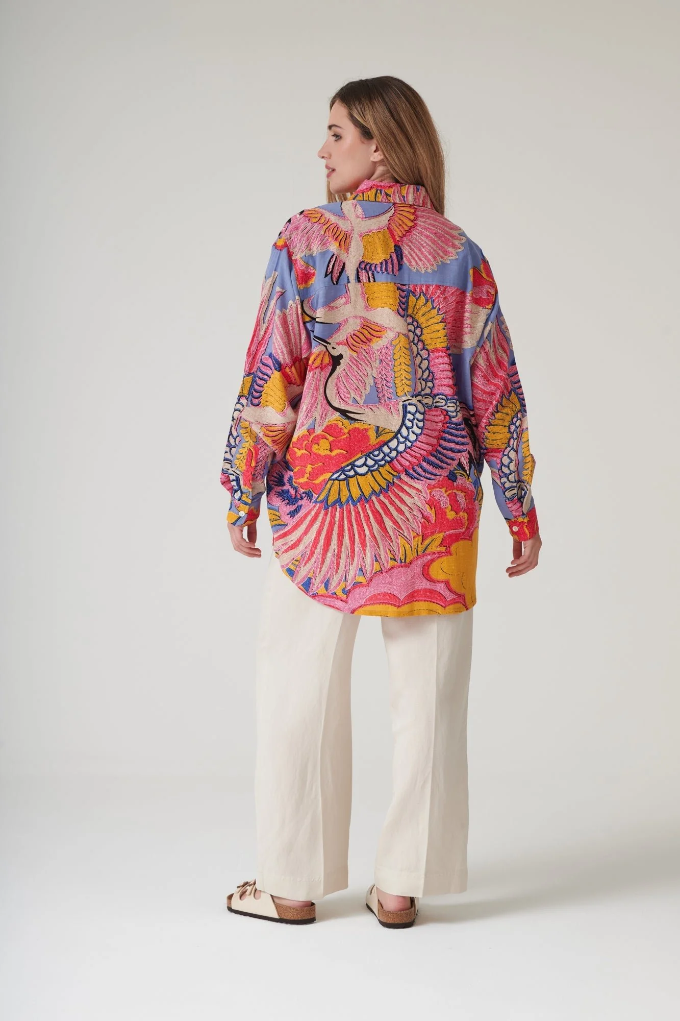 One Hundred Stars Crane Periwinkle Oversized Shirt