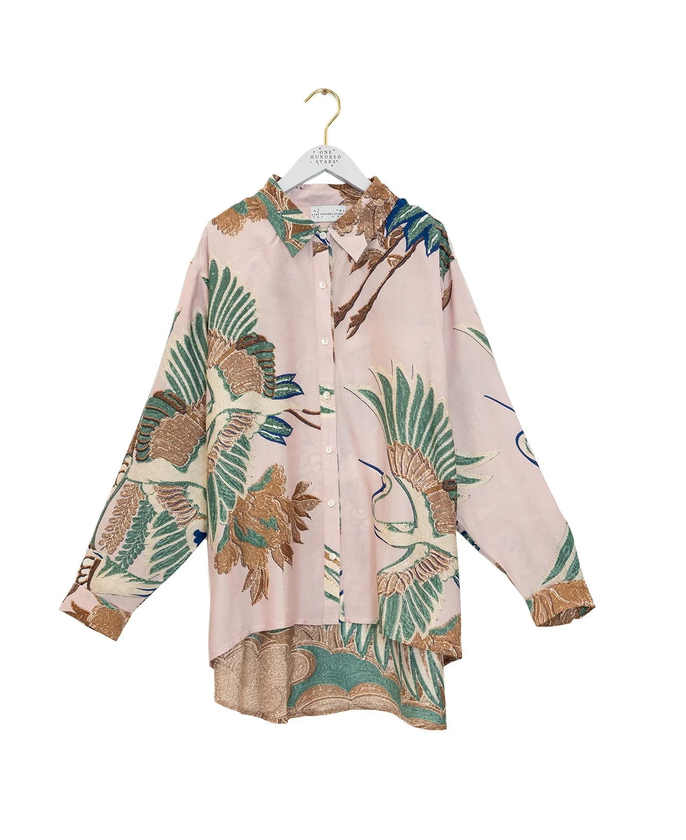 One Hundred Stars Crane Plaster Pink Oversized Shirt