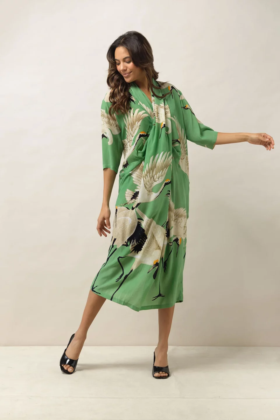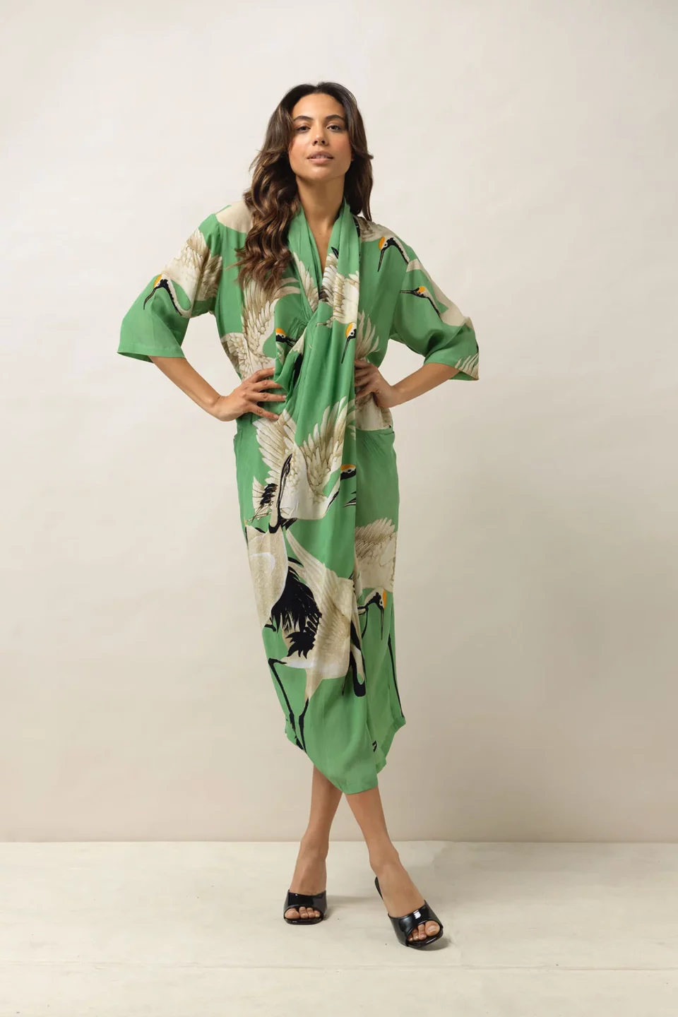 "Super speedy delivery JUST WOW!!!! received my stork kimono, looks absolutely beautiful on Even nicer than in the pictures.The material is so soft and airy. Goes great with everything I have Dressed up or down I absolutely love it and look forward to buying another gorgeous item from A&G. Superb quality, worth every penny. Great customer service experience too 11 out of ten stars to Armed & Gorgeous." - Claire H. verified buyer.