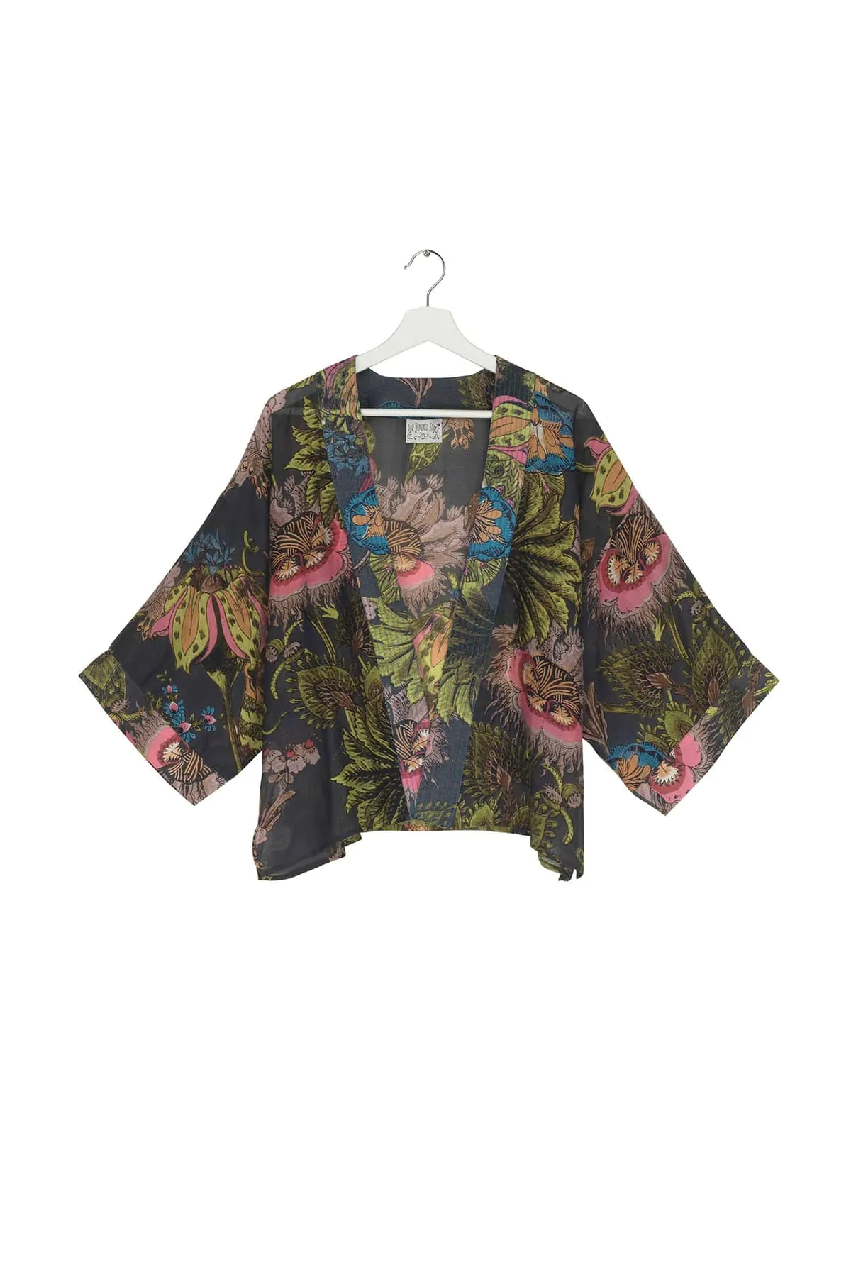 One Hundred Stars Eccentric Blooms Charcol Kimono