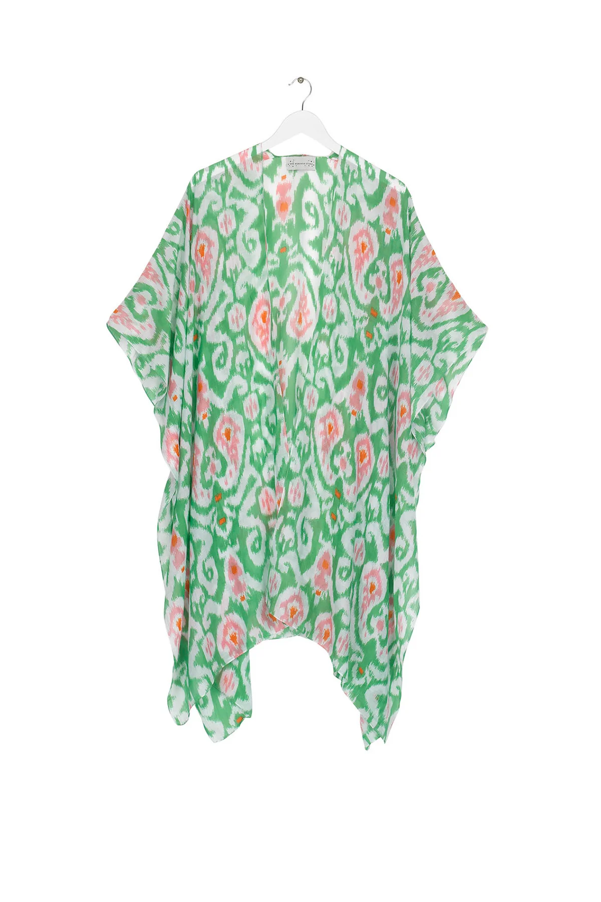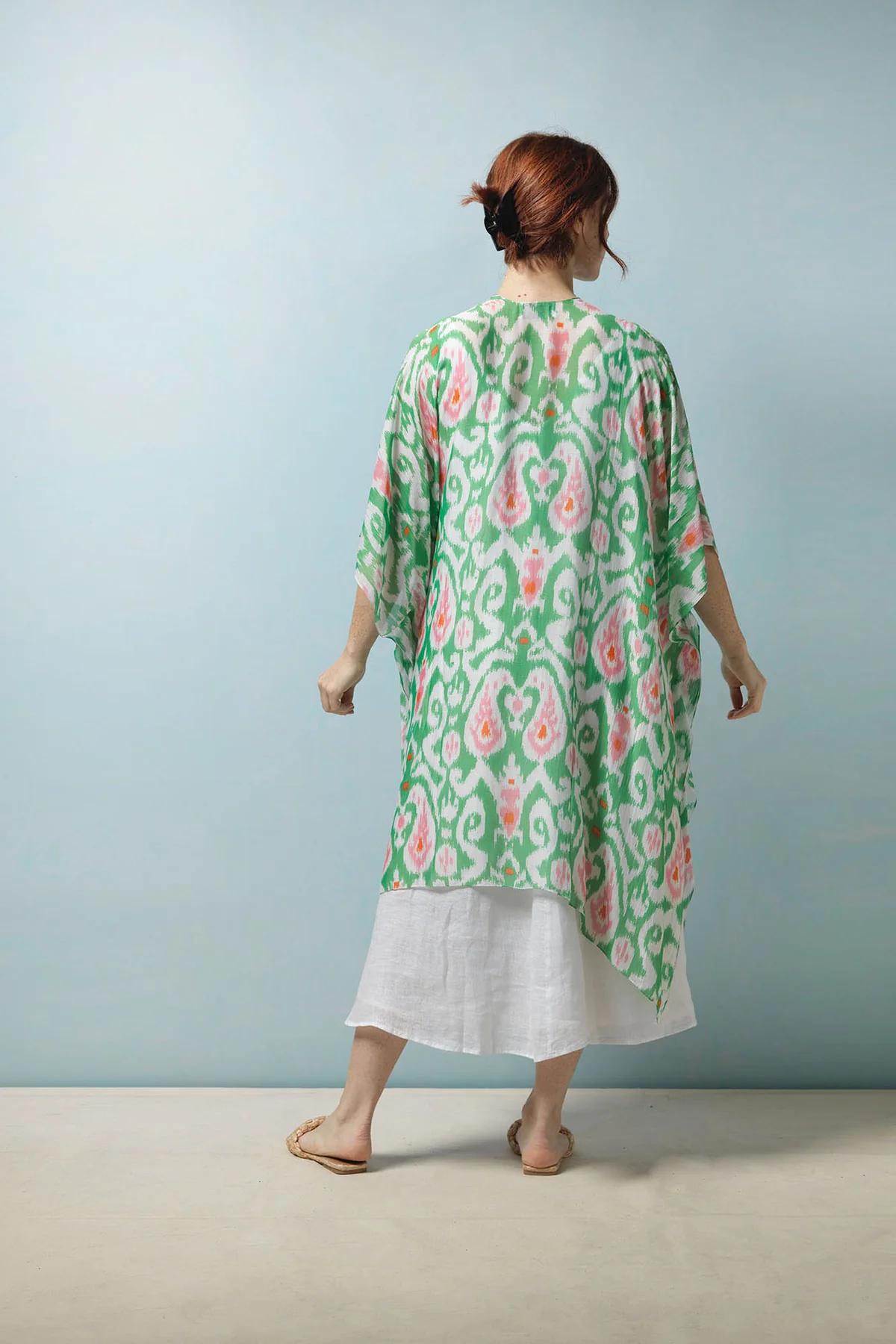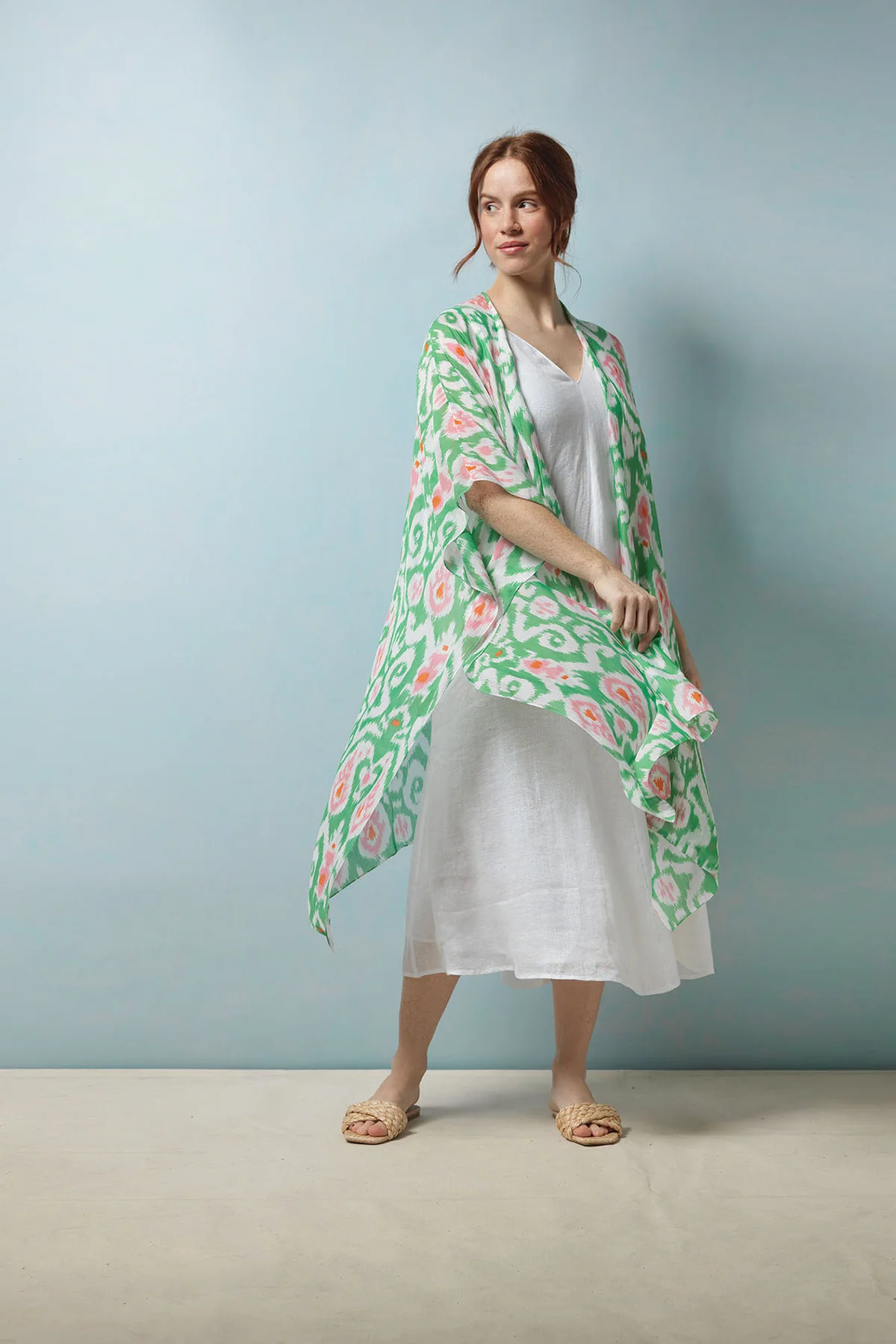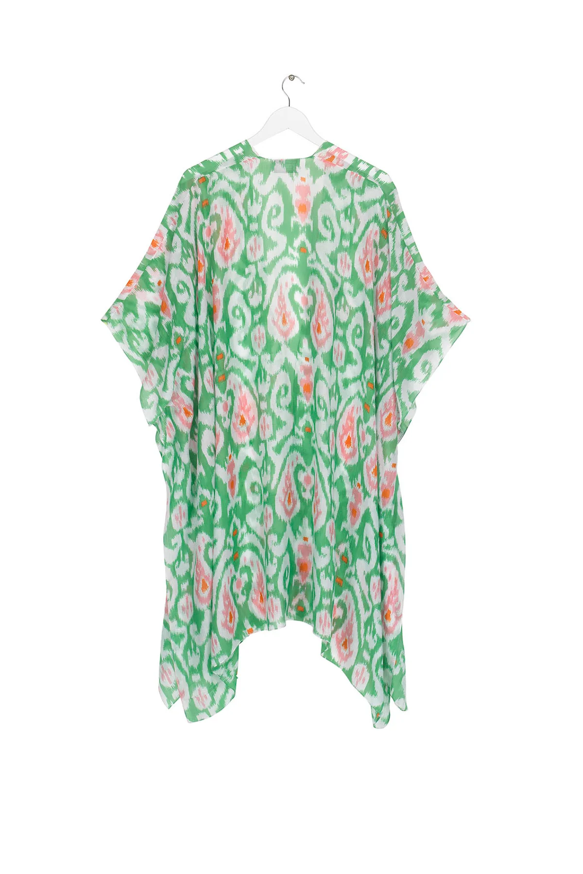 Alternate shades of green and white with a touch of pink provide this piece with an incredible depth and dimension that makes it truly stand out. The traditional ikat fabric has been given a modern twist to create a singularly stunning look. Perfect for the summer season and high summer holidays!