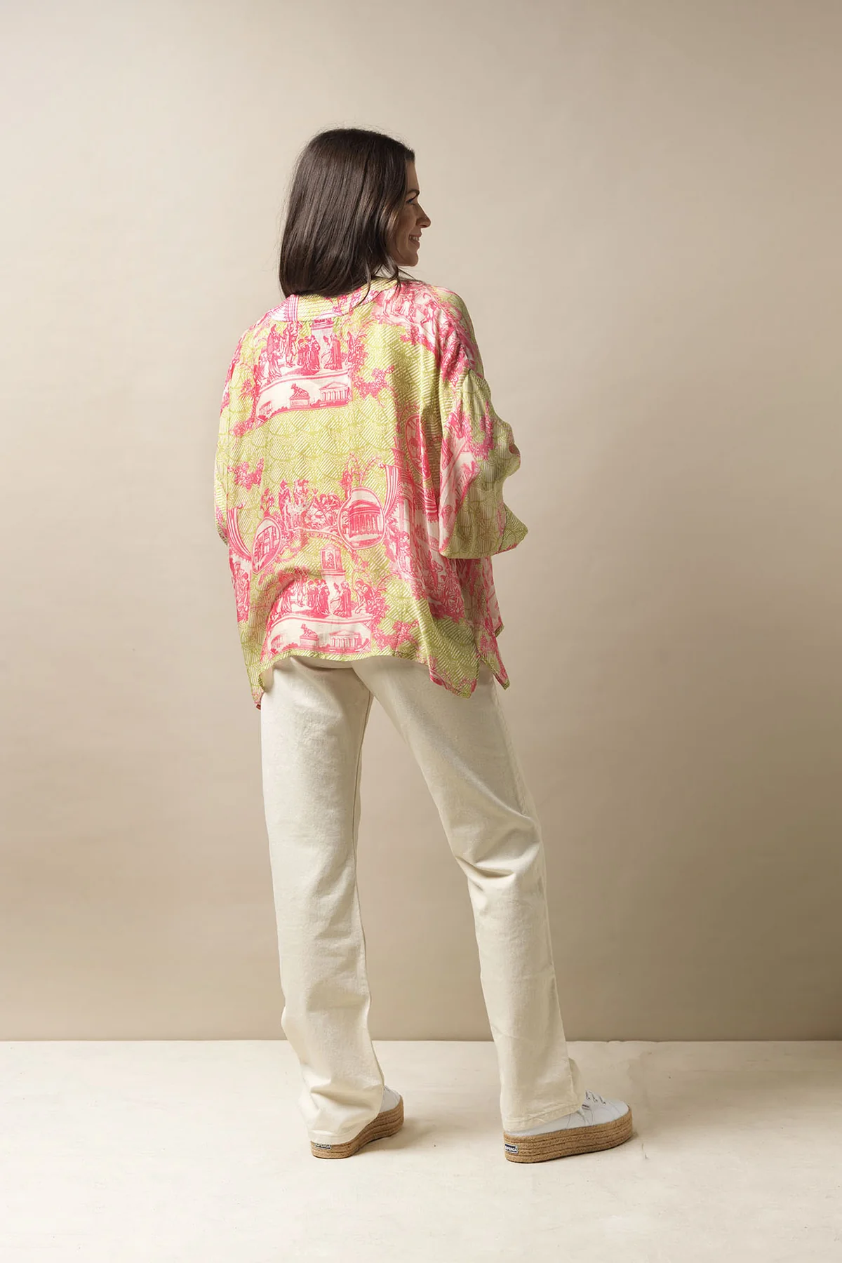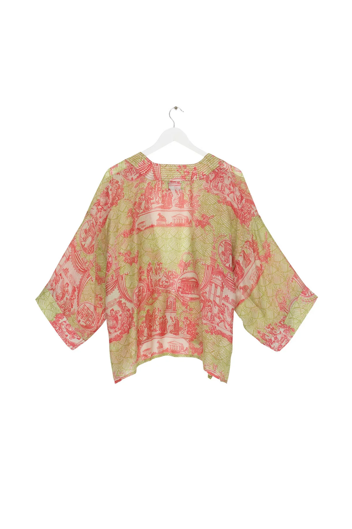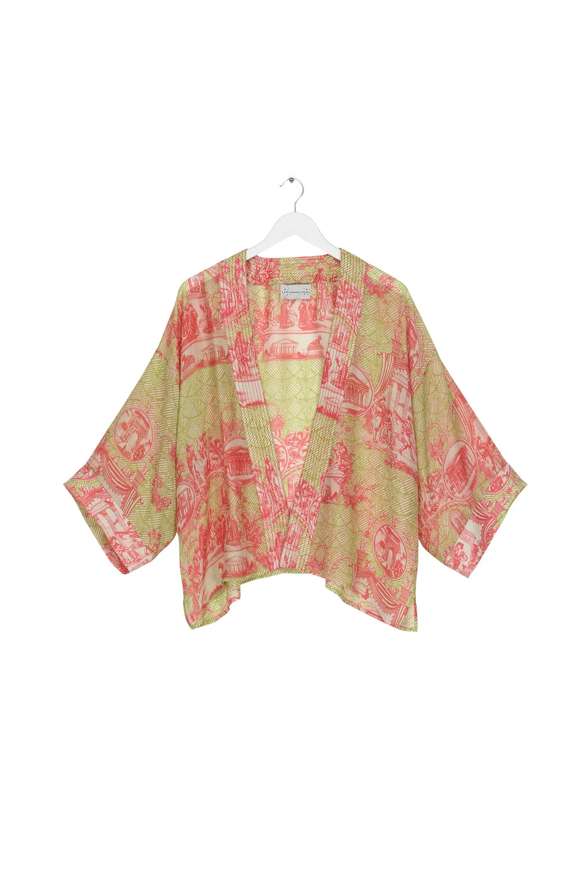 The Ancient Columns Olive print is inspired by classic vintage French Toile De Jouy fabrics but with a twist. It features delicate sketches and detailed scenes of ancient Roman and Greek architecture. This delightful colourway is brand new for Spring Summer with fuchsia pink and olive green!