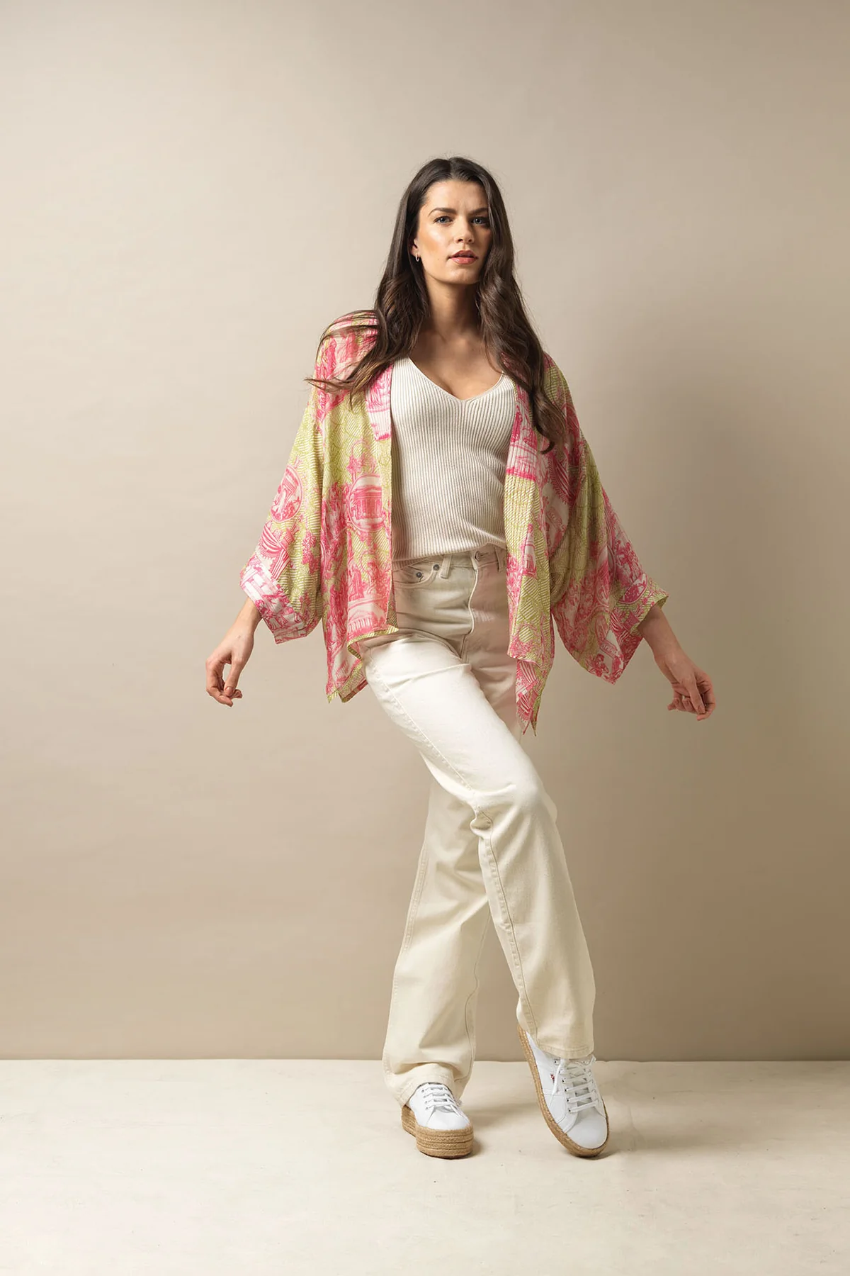 Our bestselling kimono jackets have loose ¾ length sleeves, an open front and a lightly embroidered lapel. Pair with a matching camisole and your favourite jeans in summer or layer over a polo neck during the cooler months.