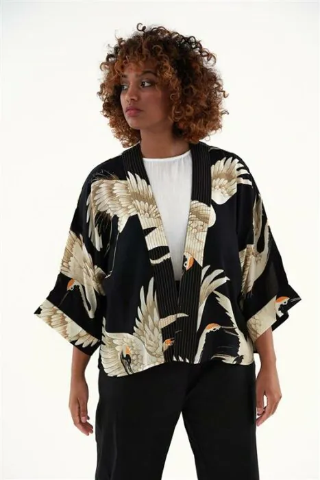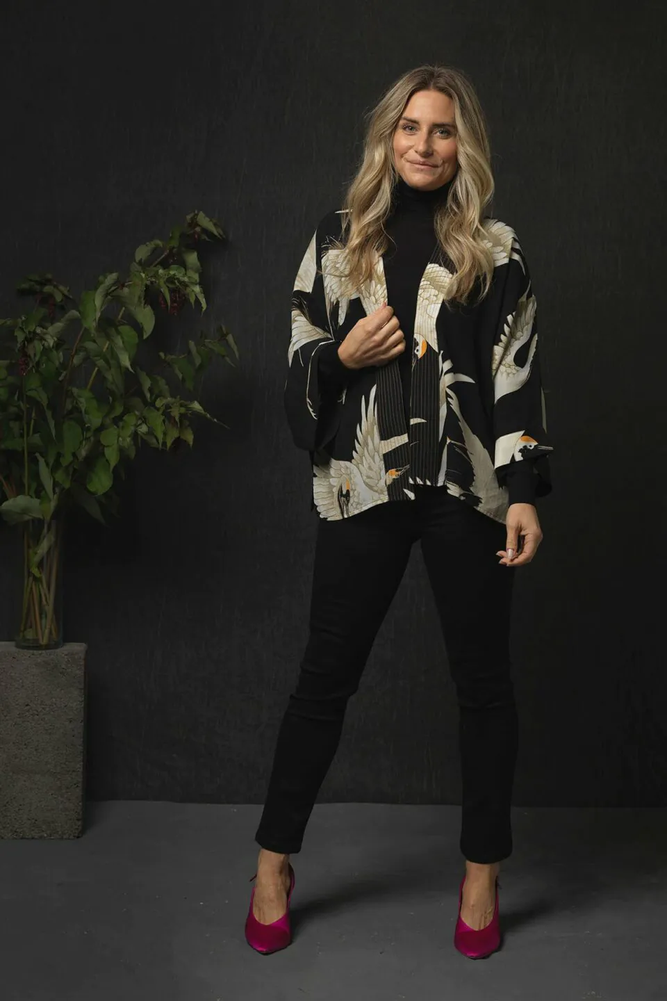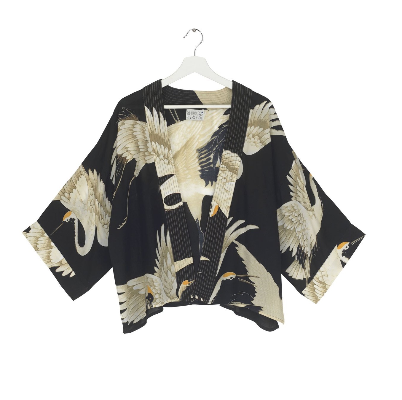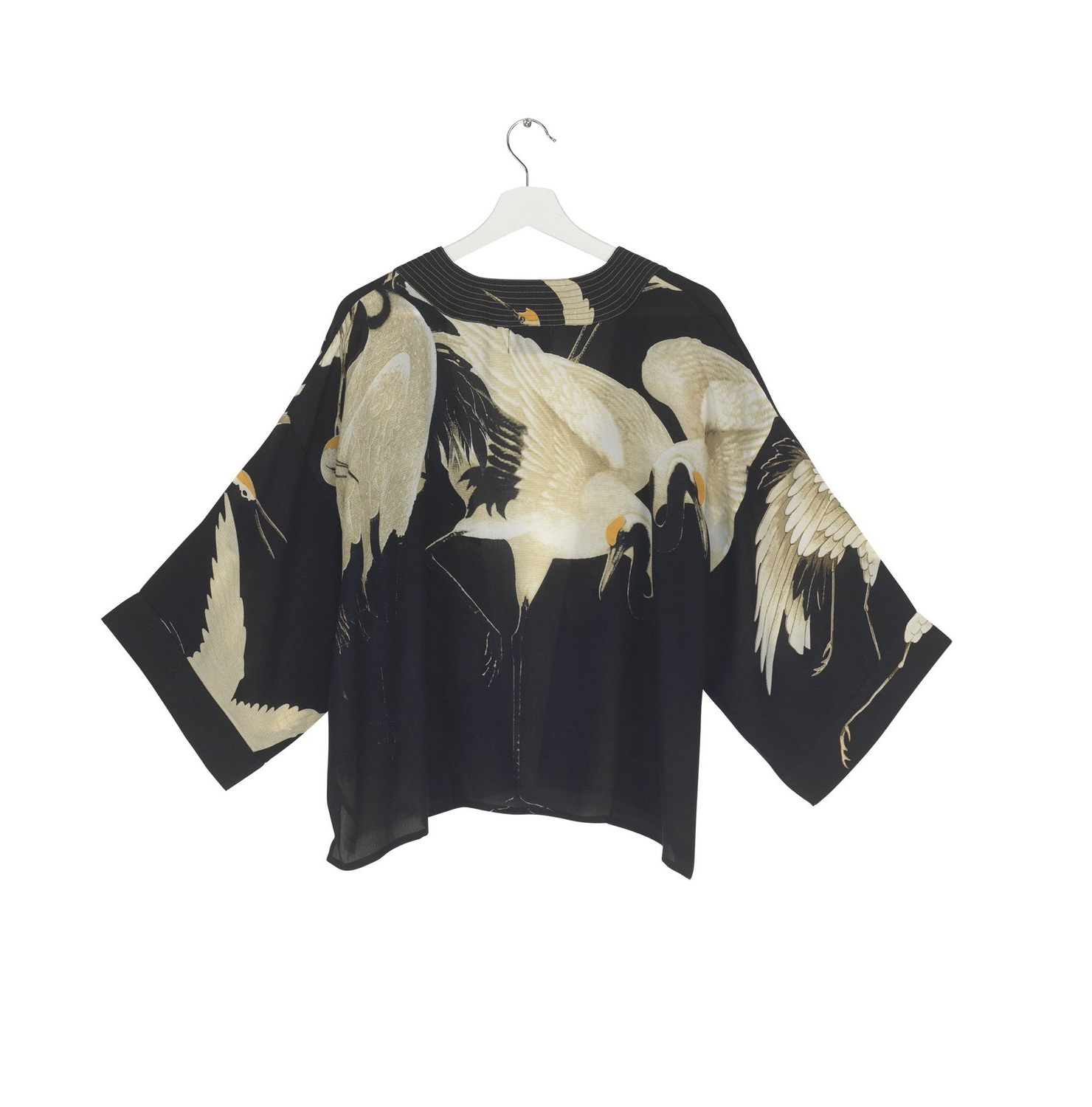 Black Stork Crepe Kimono – One hundred Stars Kimonos