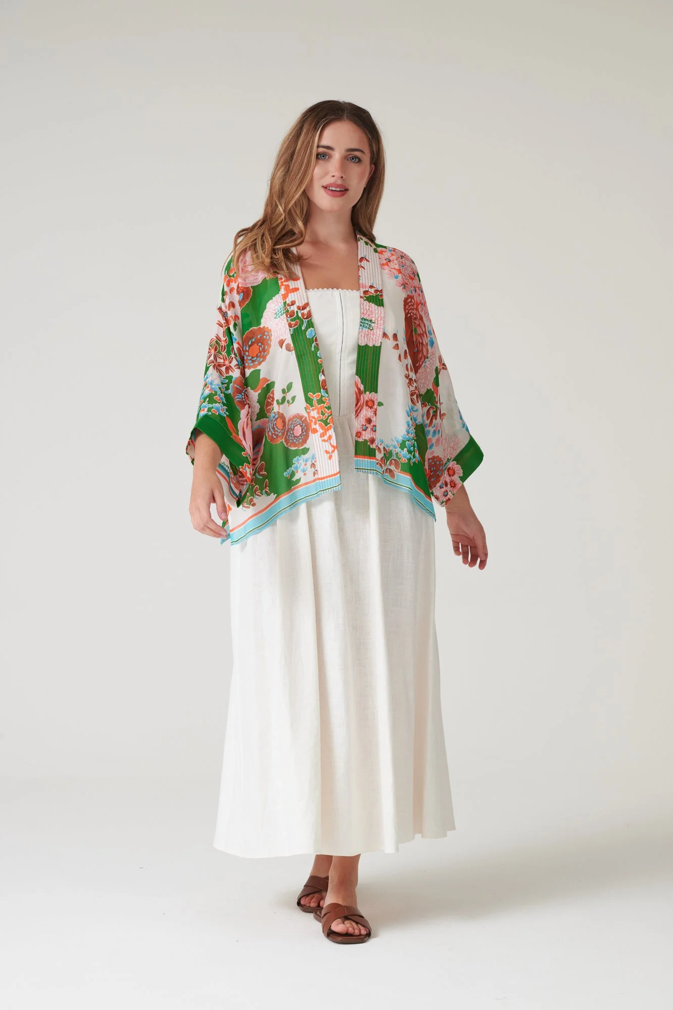 One Hundred Stars Kitsch Bouquet Green Kimono