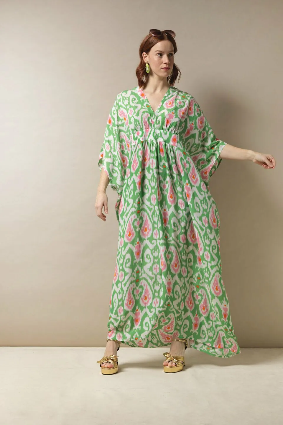 Chest – 182cm, Nape to Hem – 144cm, Collar to end of sleeve 50cm, Collar to empire line (belt) 34cm