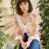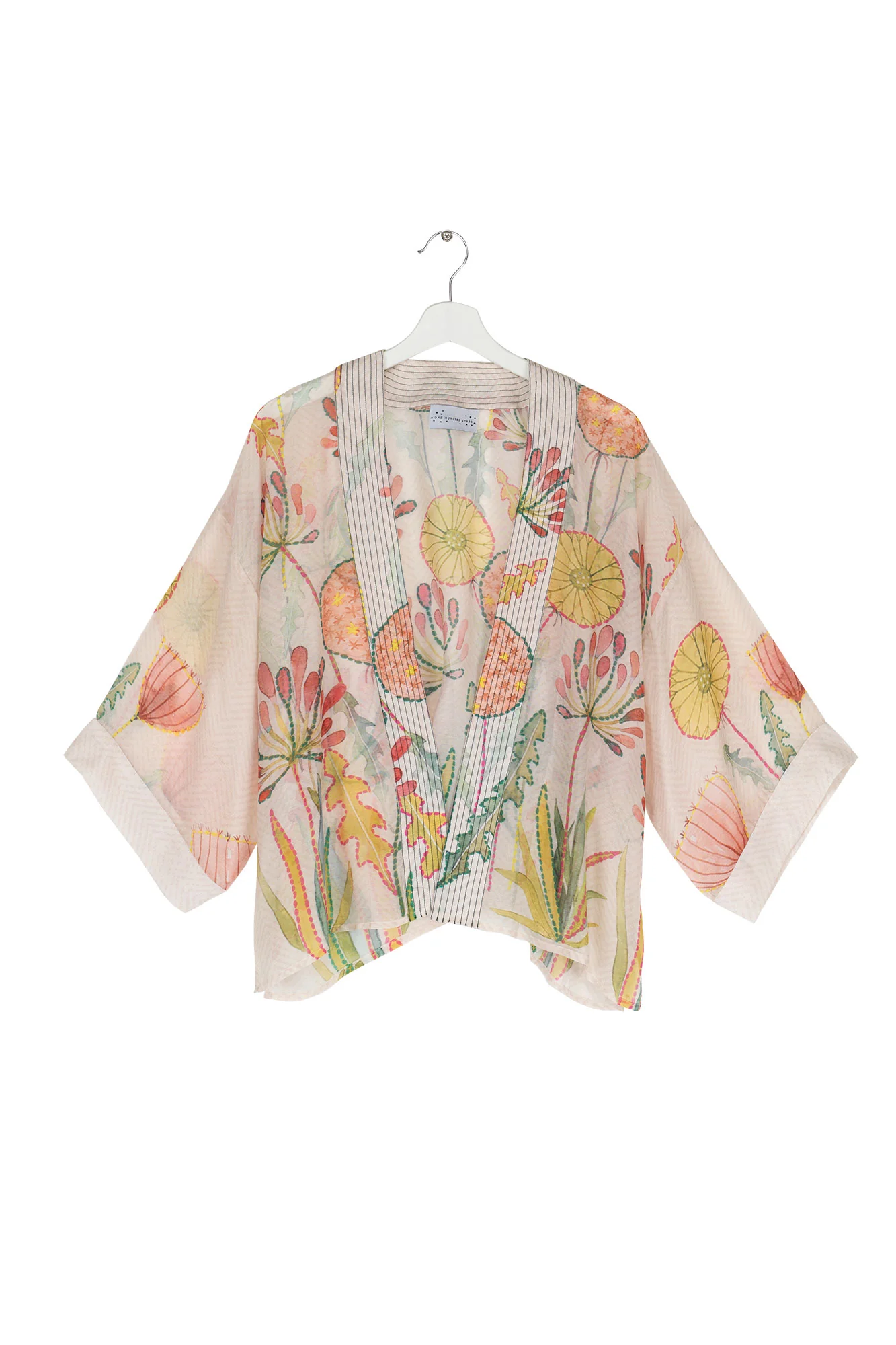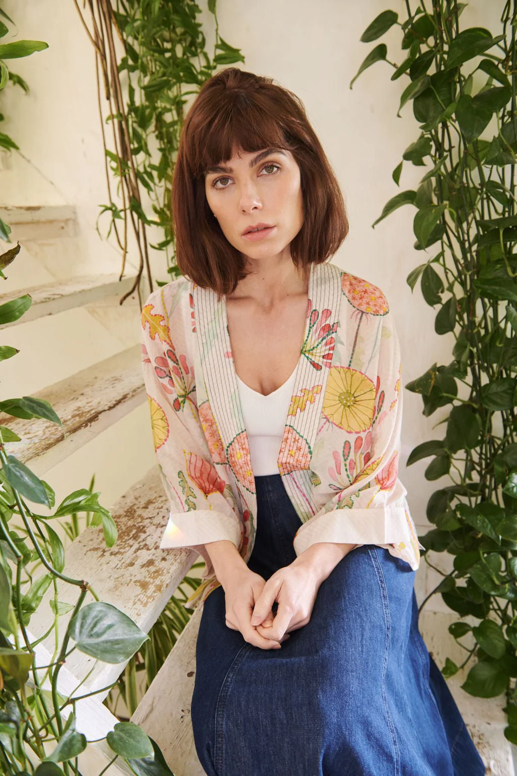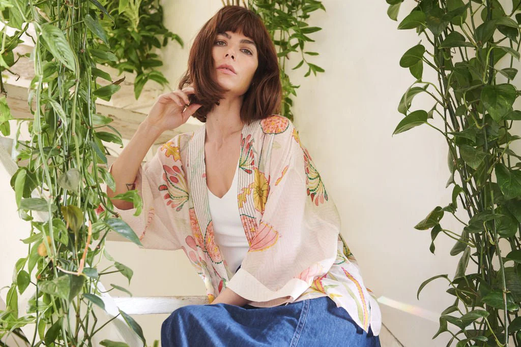 Our bestselling kimono jackets have loose ¾ length sleeves, an open front and a lightly embroidered lapel. Pair with a matching camisole and your favourite jeans in summer or layer over a polo neck during the cooler months.