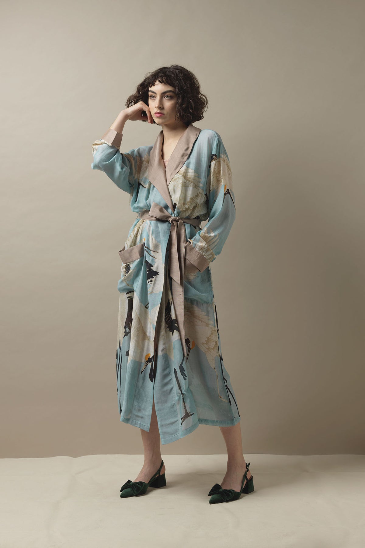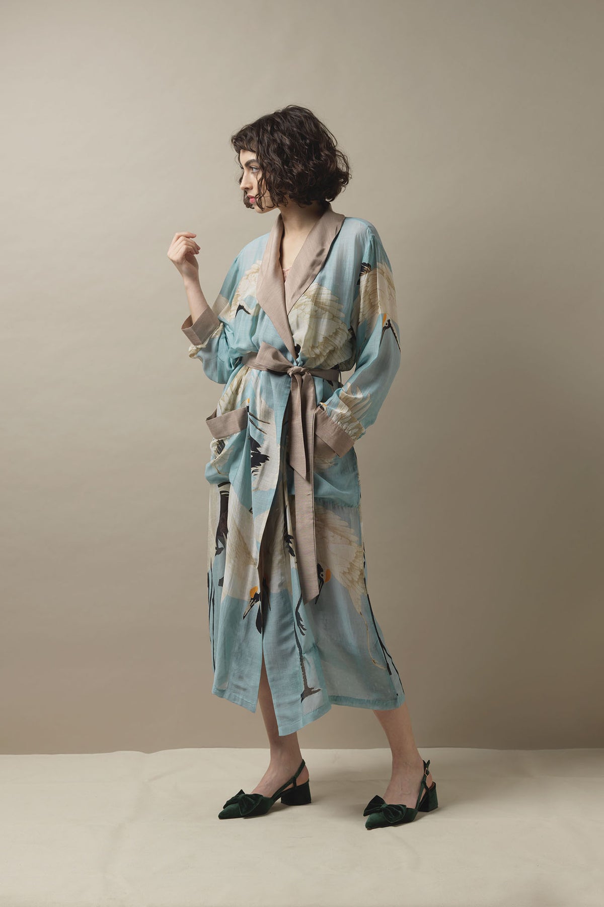 One Hundred Stars create beautiful screen-printed kimonos and gowns, all influenced by their travels around the world. Their garments are made in India and follow the highest standards of ethical, environmental, and health & safety policy.