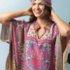 This one is a standout, with its exquisite bohemian print in bright pink and caramel hues. Step out in this timeless piece with exquisite detailing, and you will feel like royalty this summer!