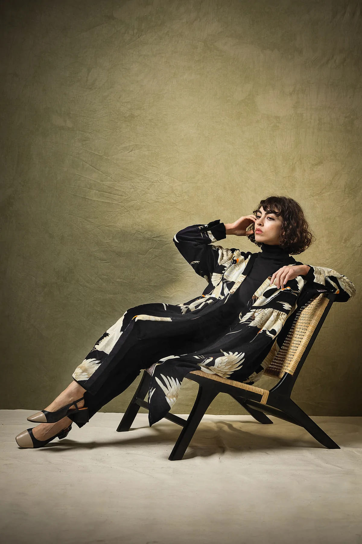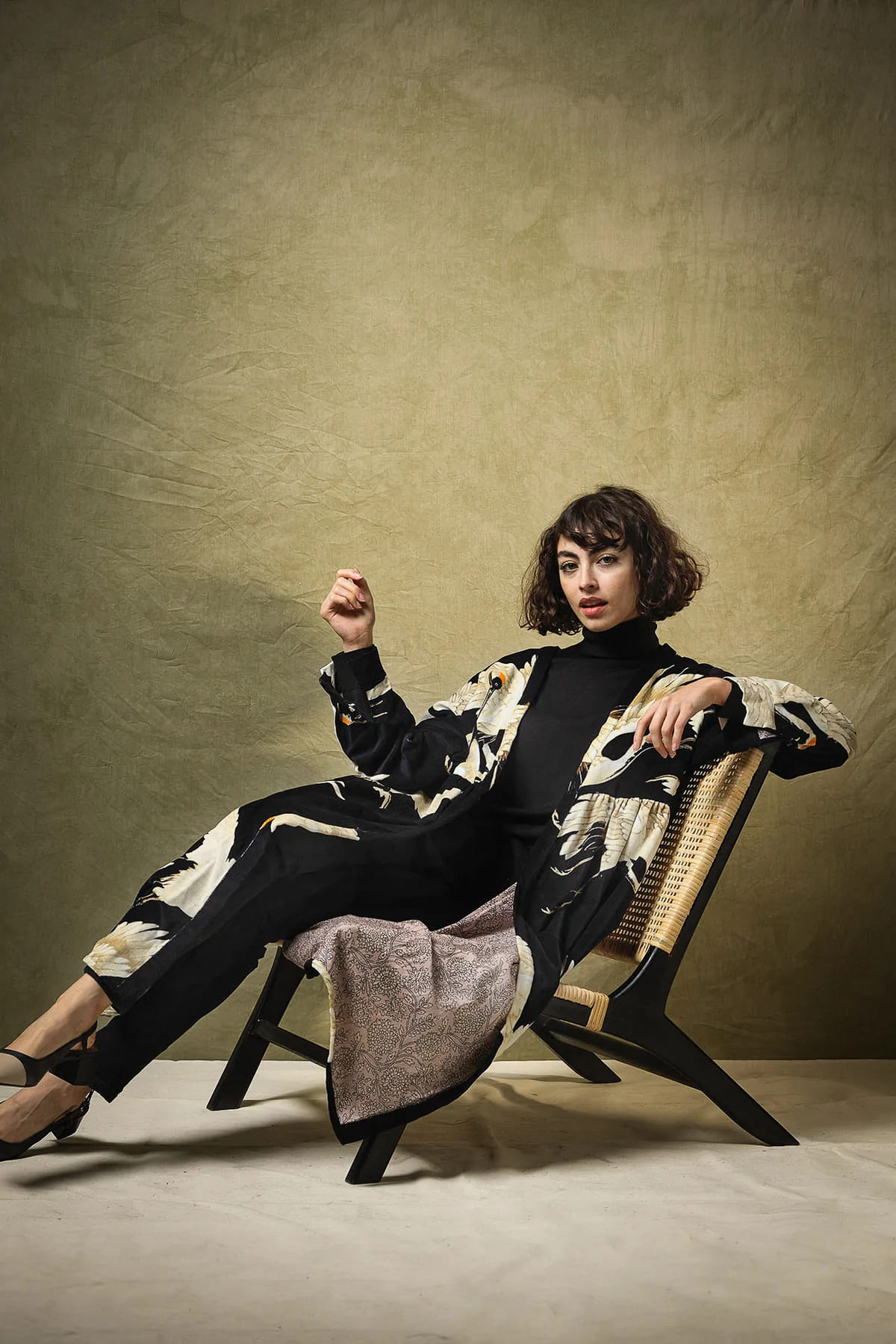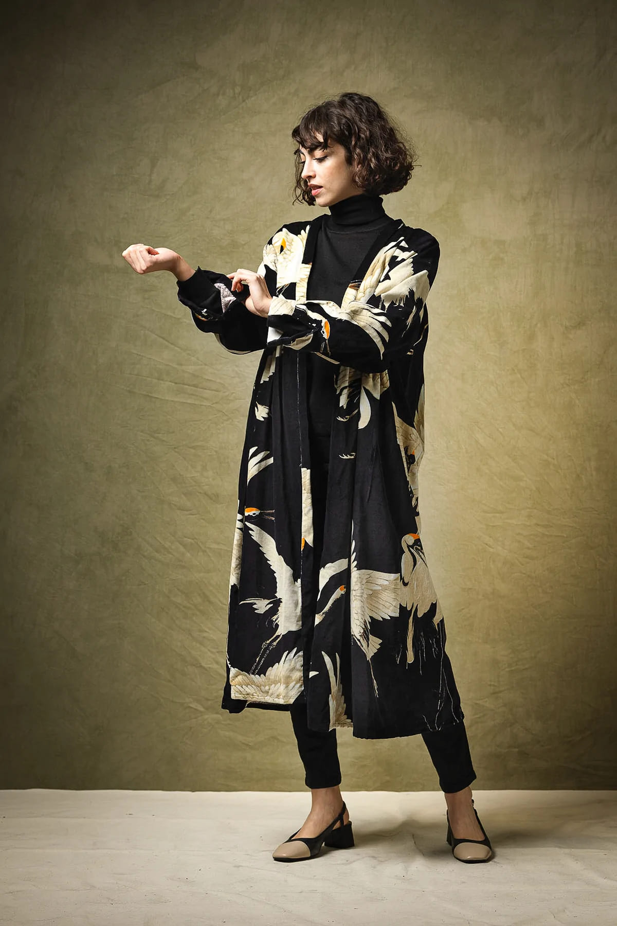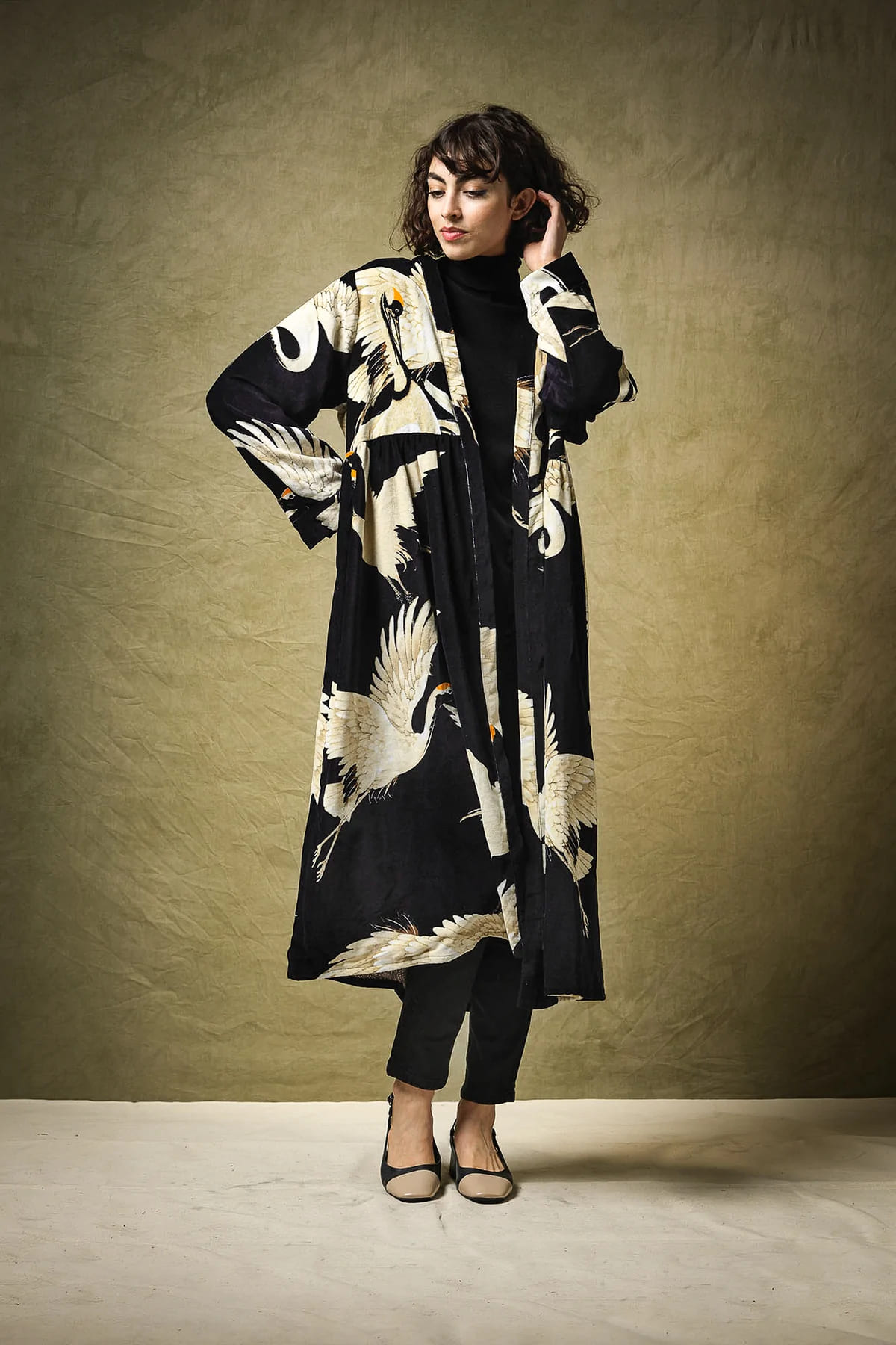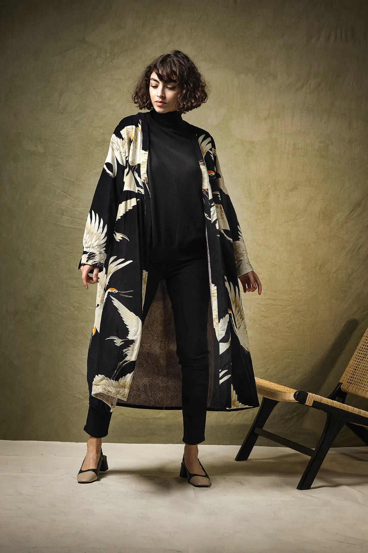 Storks and cranes have been a major art deco trend in both fashion and interiors and this Stork Black Velvet Duster is perfect for anyone looking for something chic, stylish and in vogue!