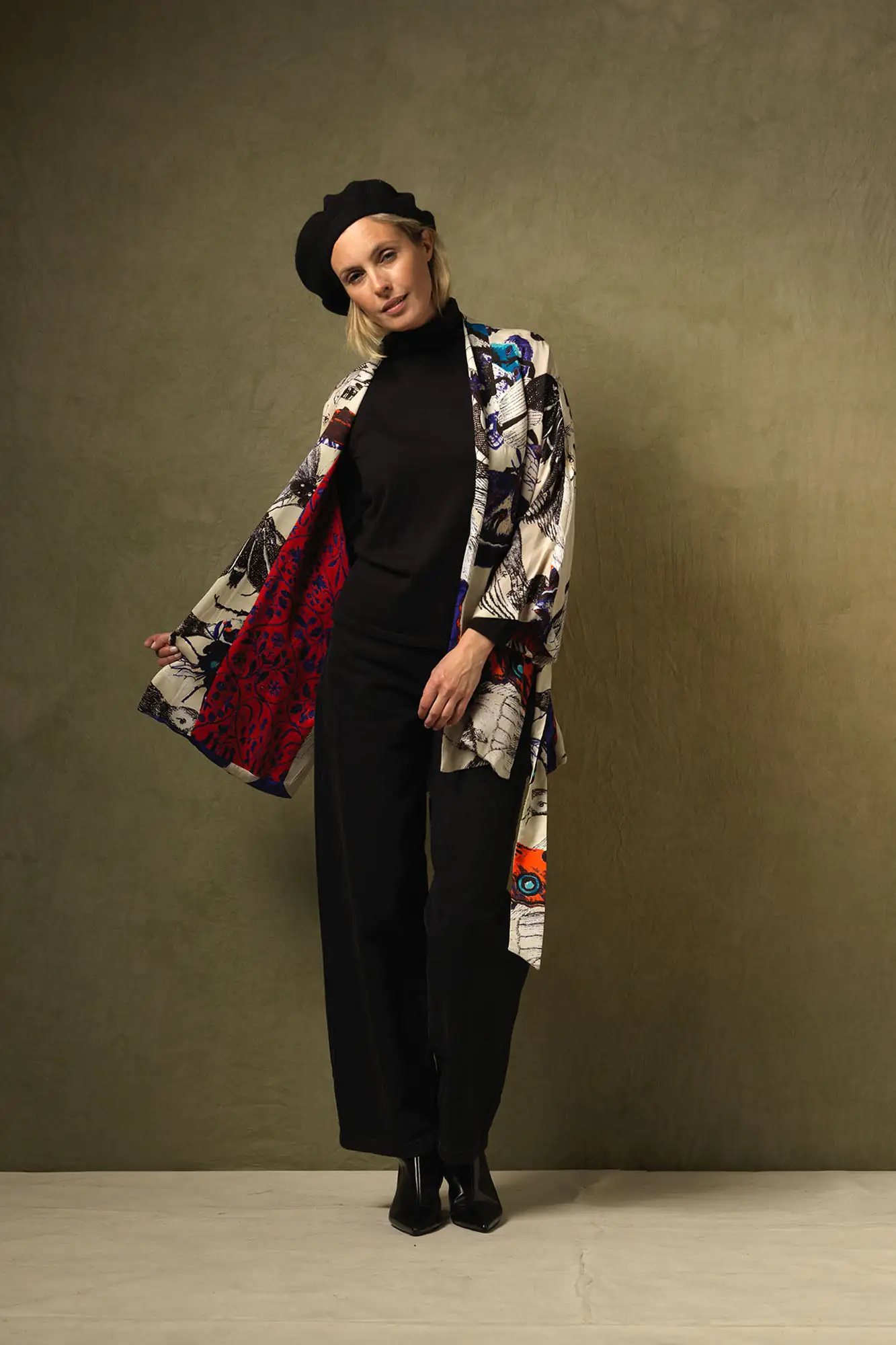 "The kimono jacket was even better than I expected from the photo. It was beautifully wrapped and the quality was amazing. I’ve have lots of positive comments when I wear it. Great service from order to delivery." - Ana M. verified buyer.