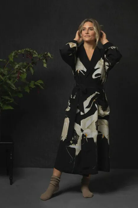 One Hundred Stars create beautiful screen-printed kimonos and gowns, all influenced by their travels around the world. Their garments are made in India and follow the highest standards of ethical, environmental, and health & safety policy.