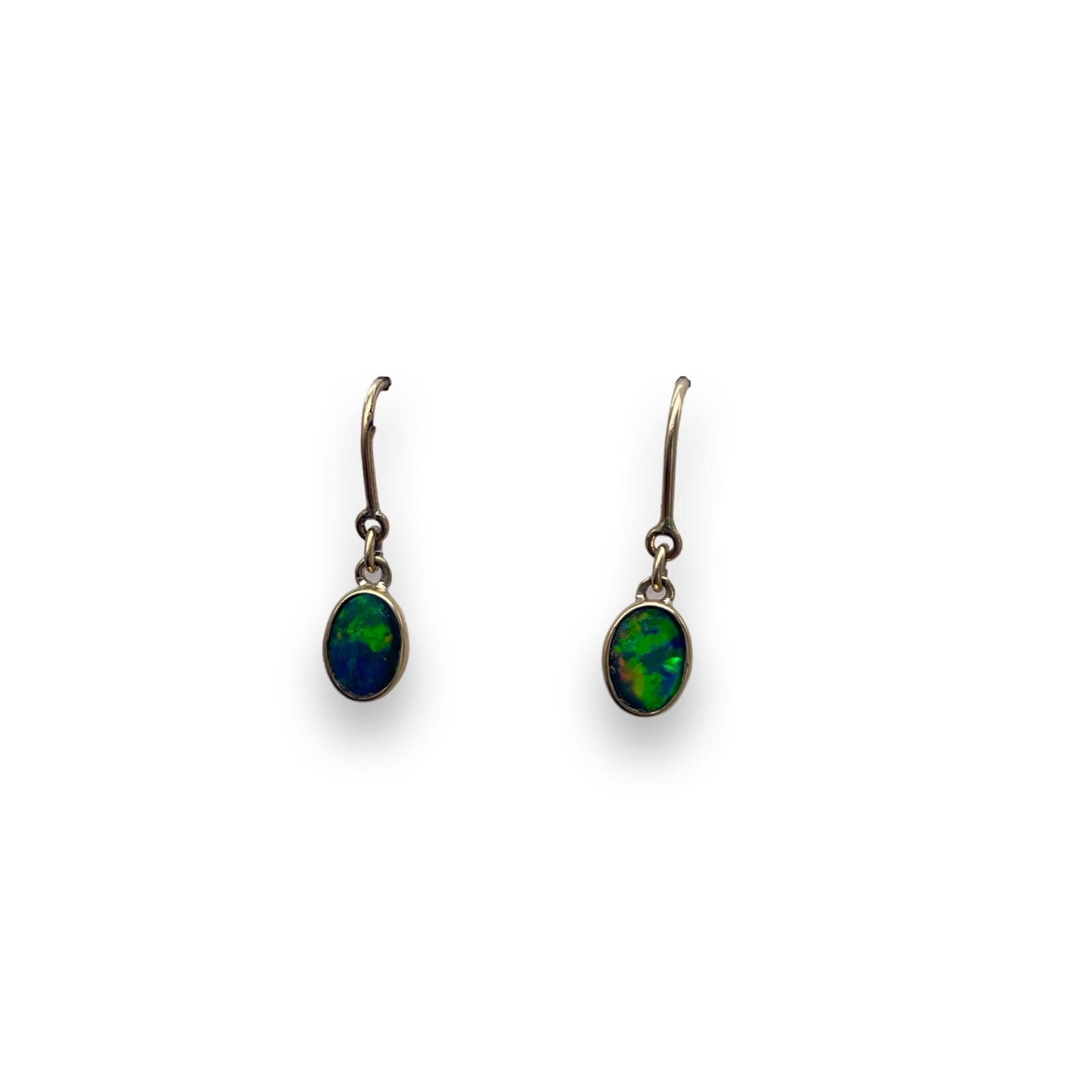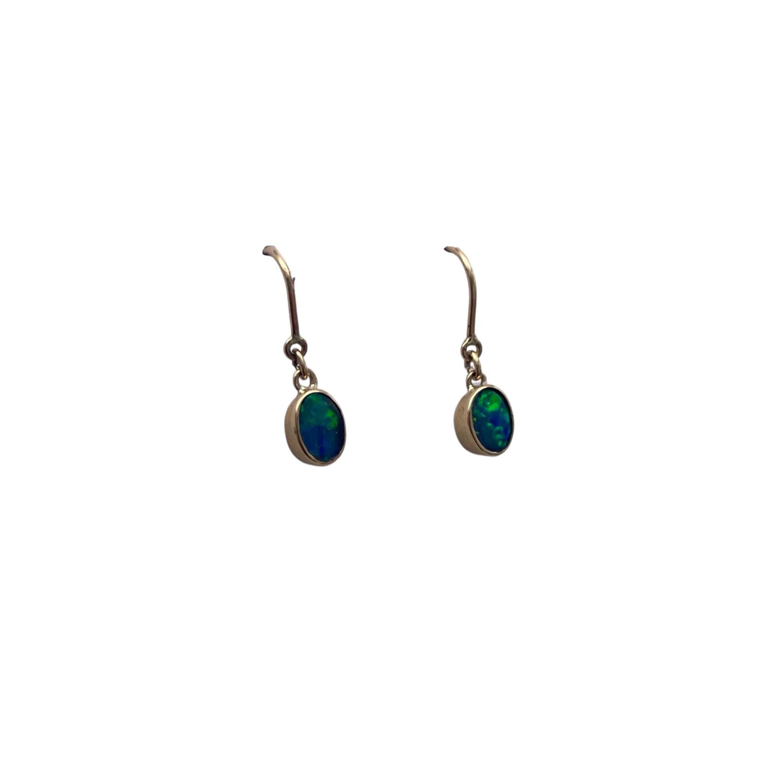 A beautiful pair of blue opal droplet earrings, set in 9ct gold, with a soft rub over finish which enables the opal to show off its true colours, blues and greens. Framing your face these gorgeous oval shaped earrings will shine and catch the light as you gently move your head, they will add simplicity and style to any outfit you wear.