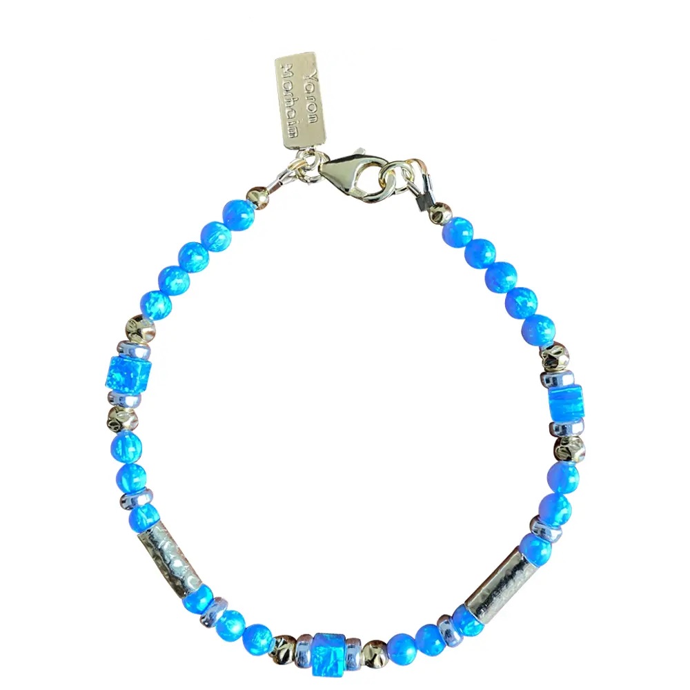 Perfect for layering into your bracelet collection. This bracelet features 4mm Opals gemstones with 14k rolled gold roundels and hammered rolled gold balls.