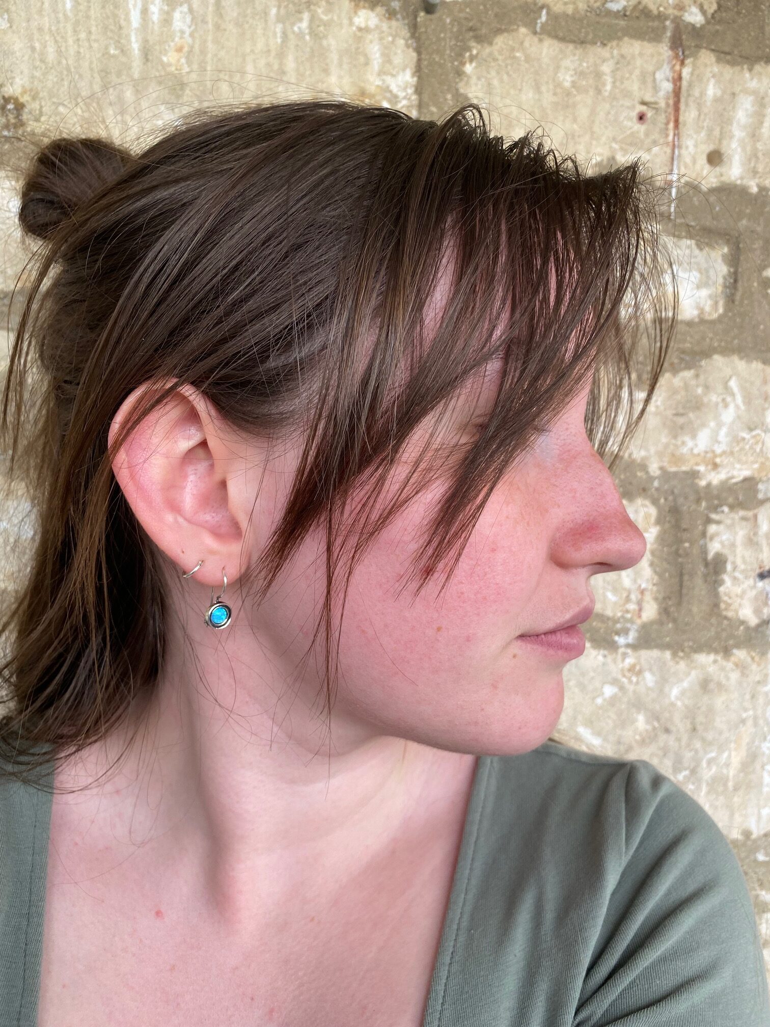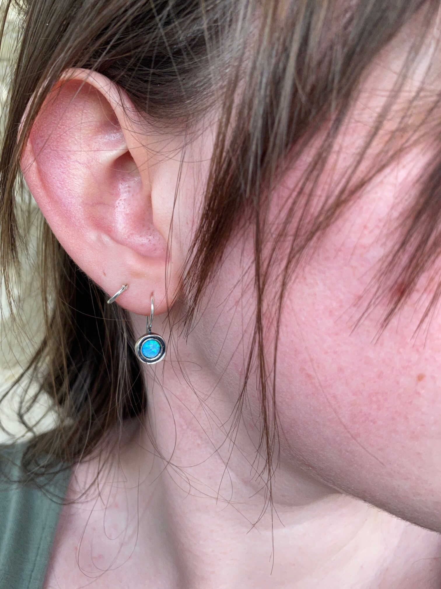 Hook drops featuring sterling silver rings surrounding a circle of opalite gemstone: whether it’s a gift for a loved one or a treat for yourself, you just can’t go wrong with these beautiful earrings. Our collection of opalite jewellery is understated and simple, perfect for everyone, every day.