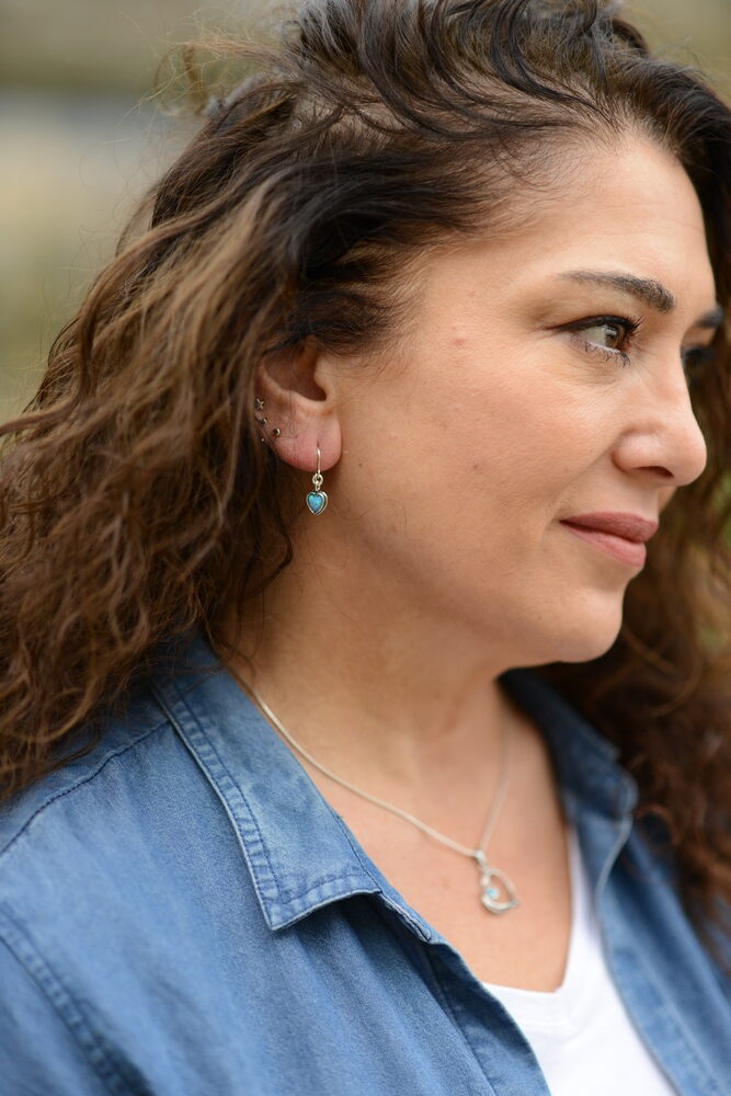 These elegant heart drops are crafted from silver, the opalites add some extra sparkle.