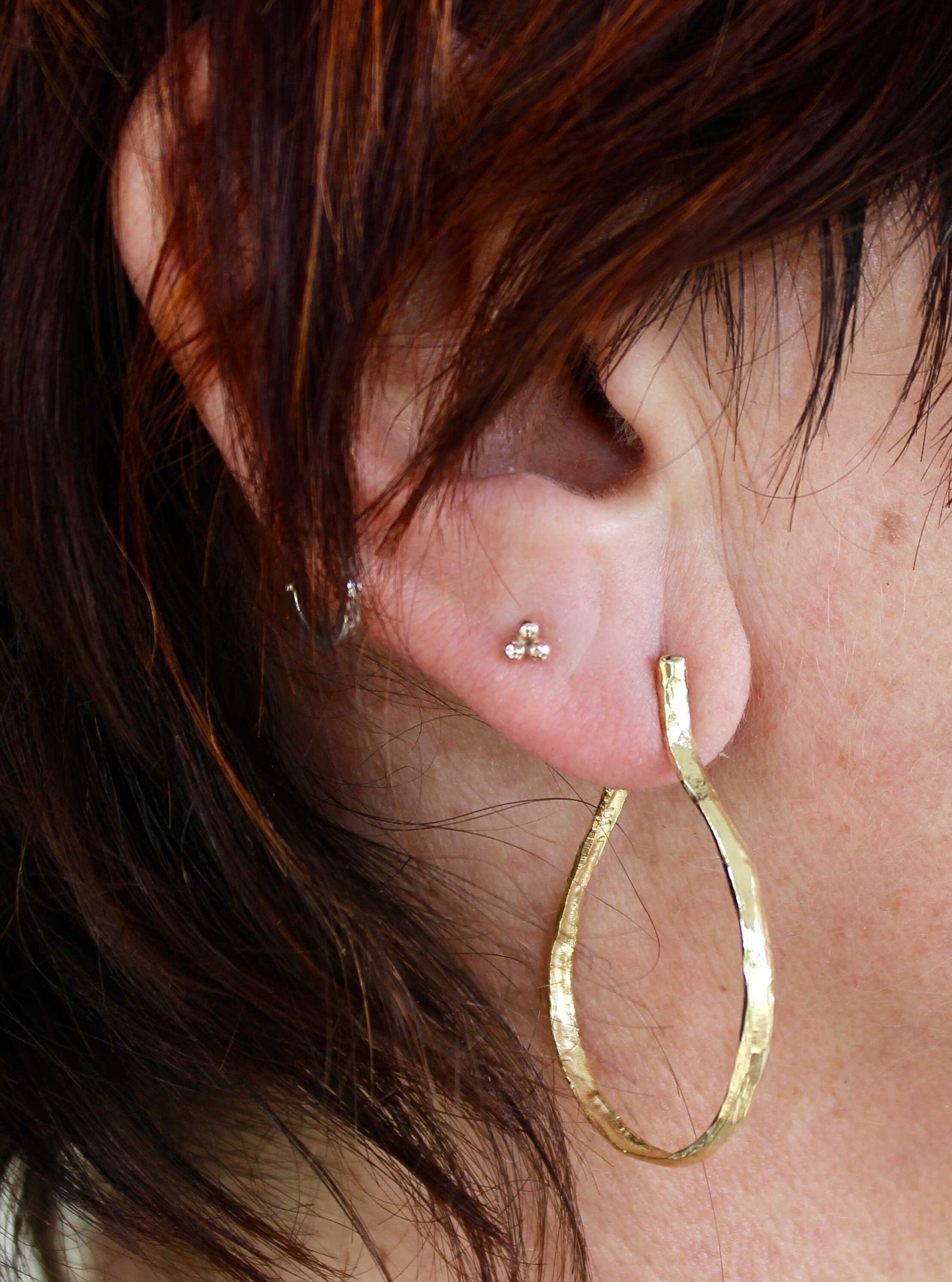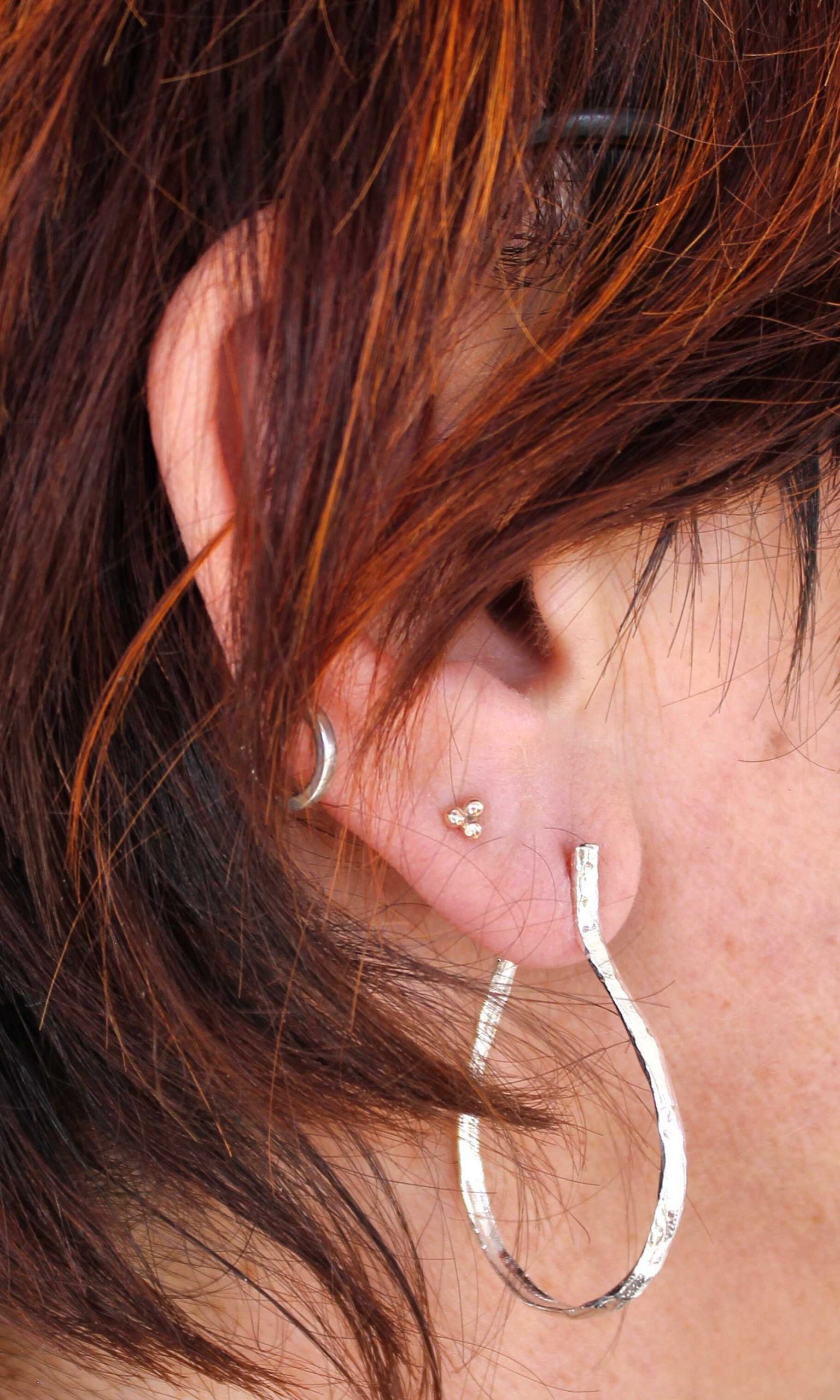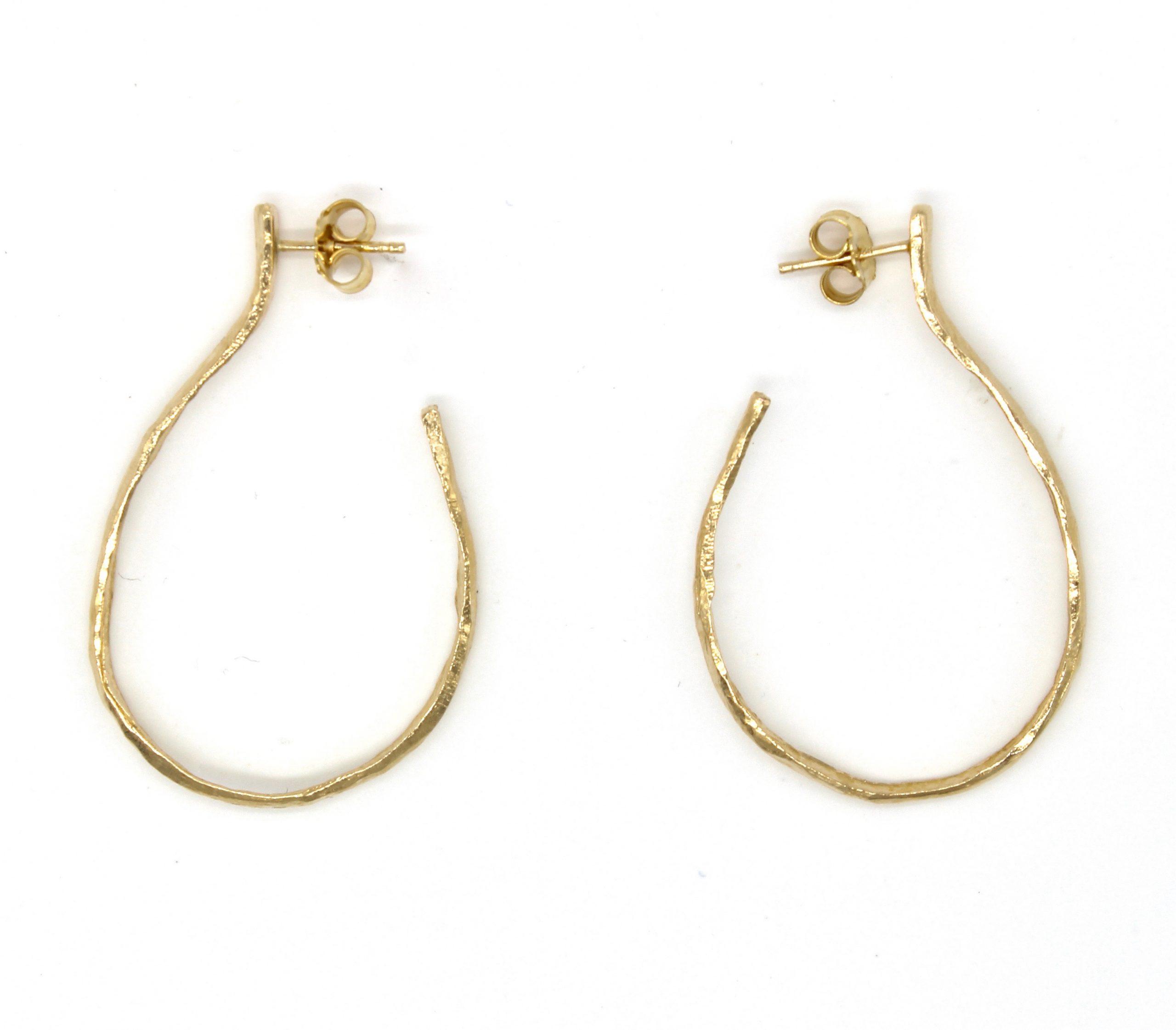 Open-ended oval hoop studs with a wonderful organic texture that catches the light beautifully. Made from sterling silver, with a gold plate option available too.