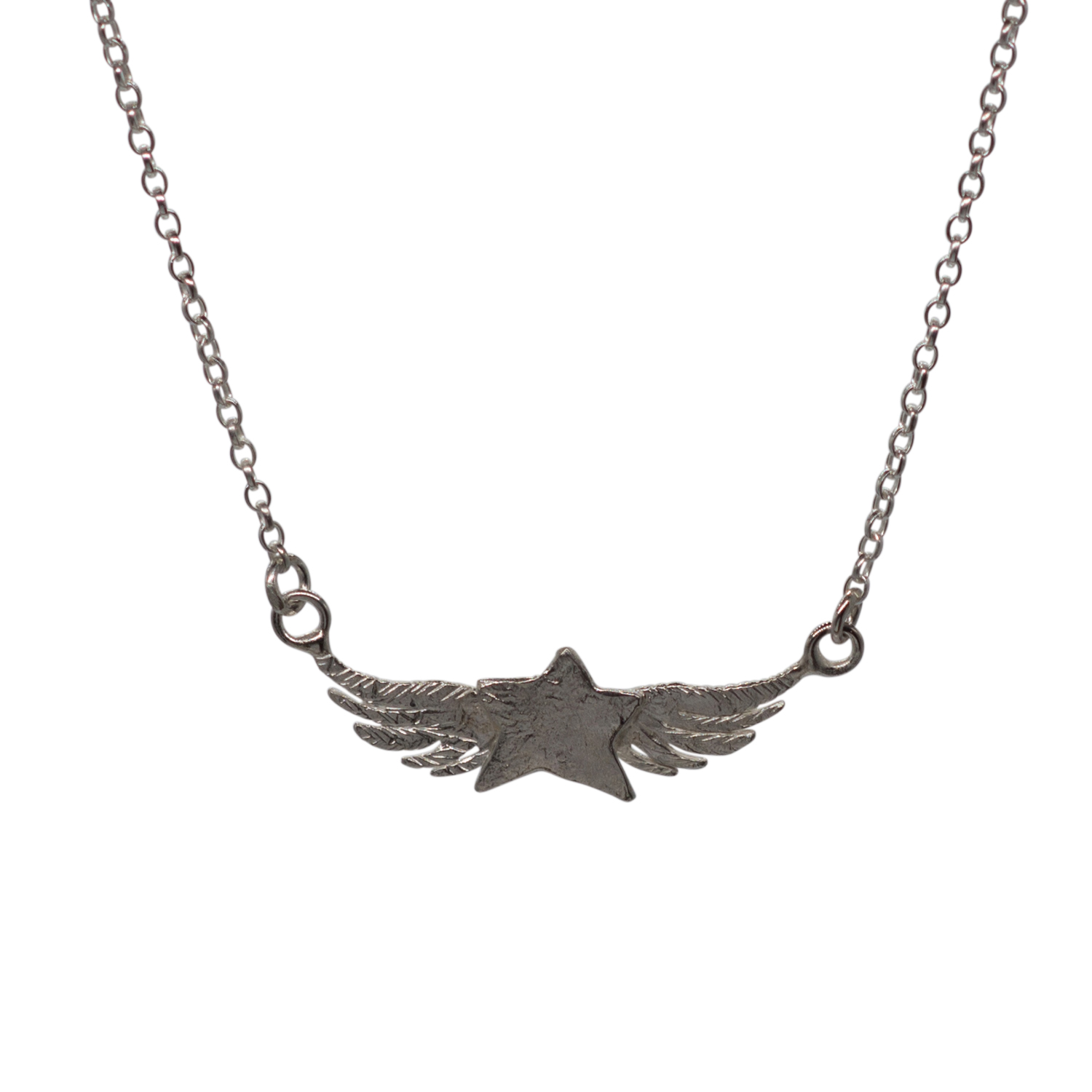 Handmade organic form star and wing pendant made from solid sterling silver.