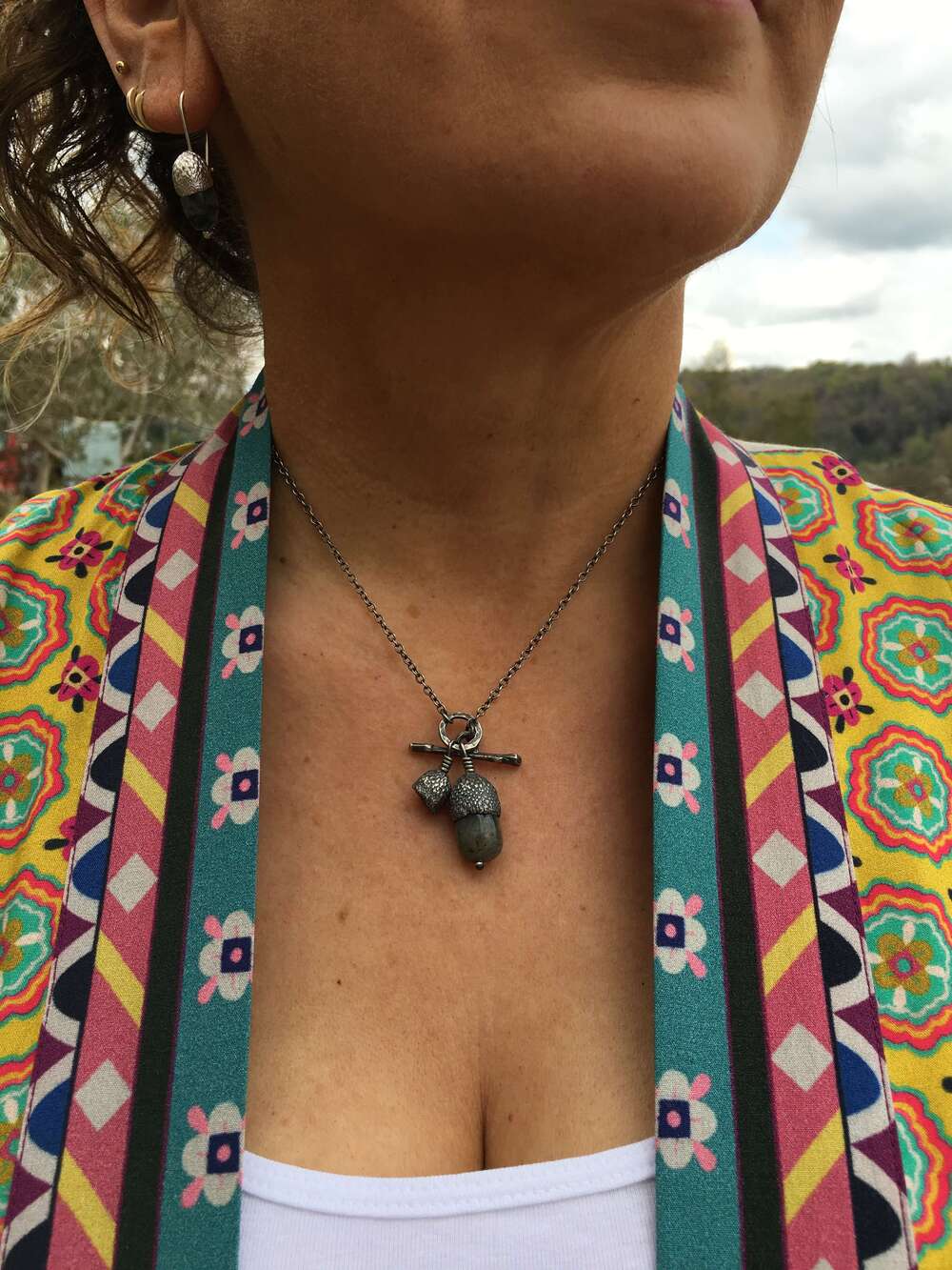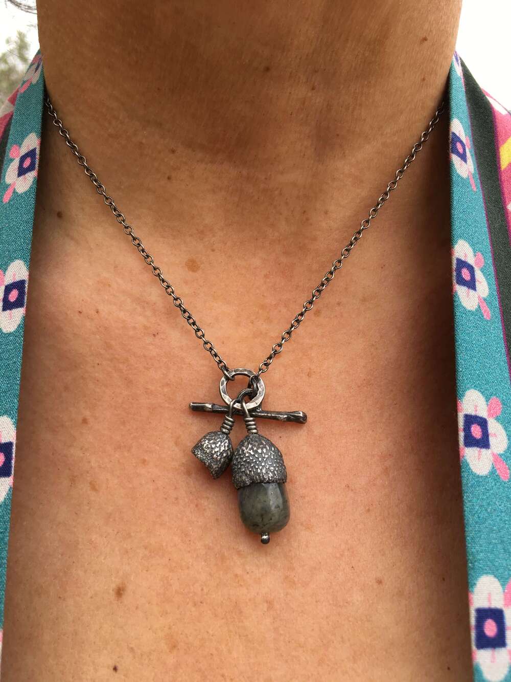 Oxidised Labradorite Acorn With Acorn Cup Necklace