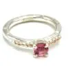 Fi Mehra Pink Tourmaline Silver Ring with Rose Gold Dot Detail