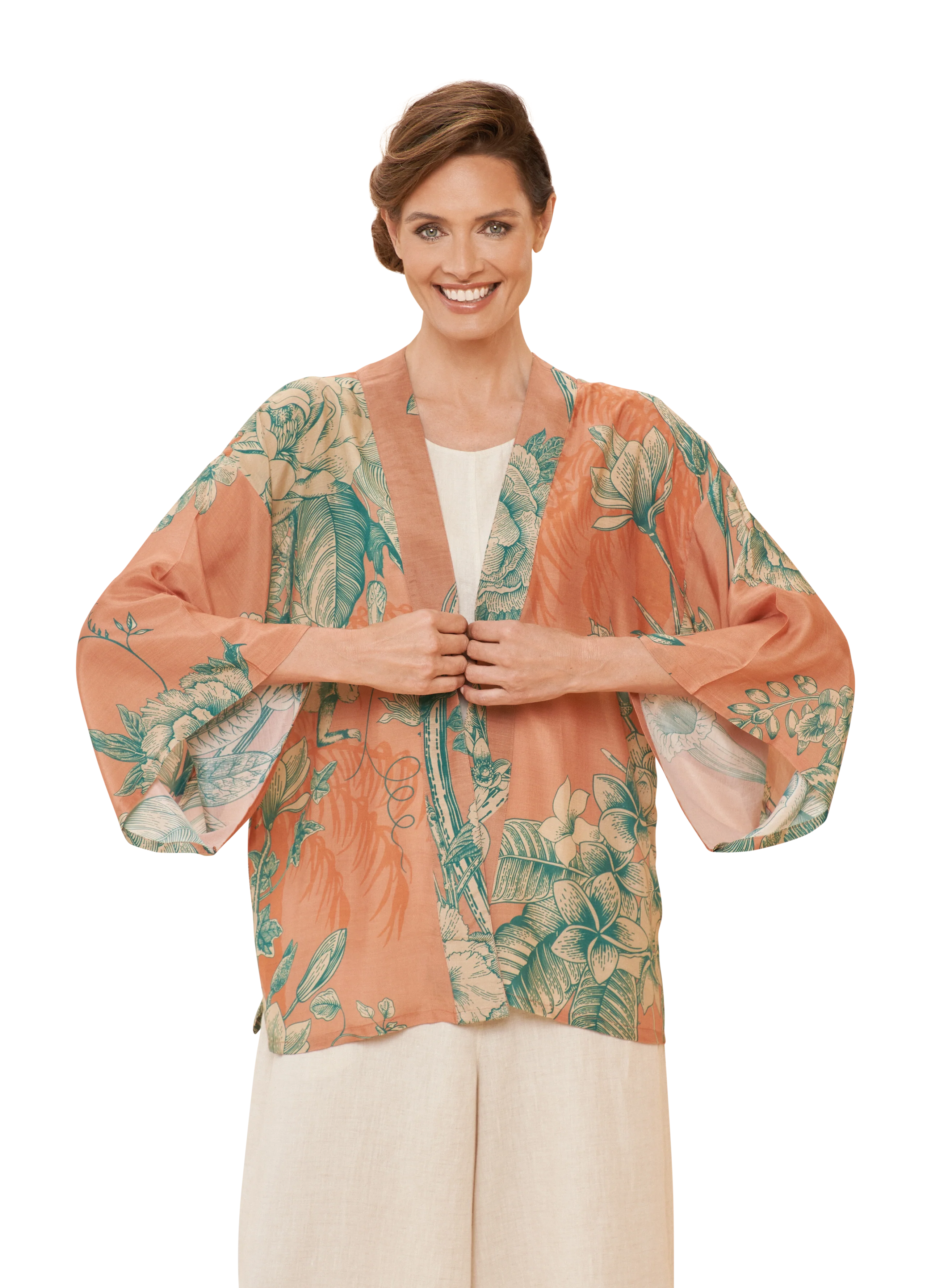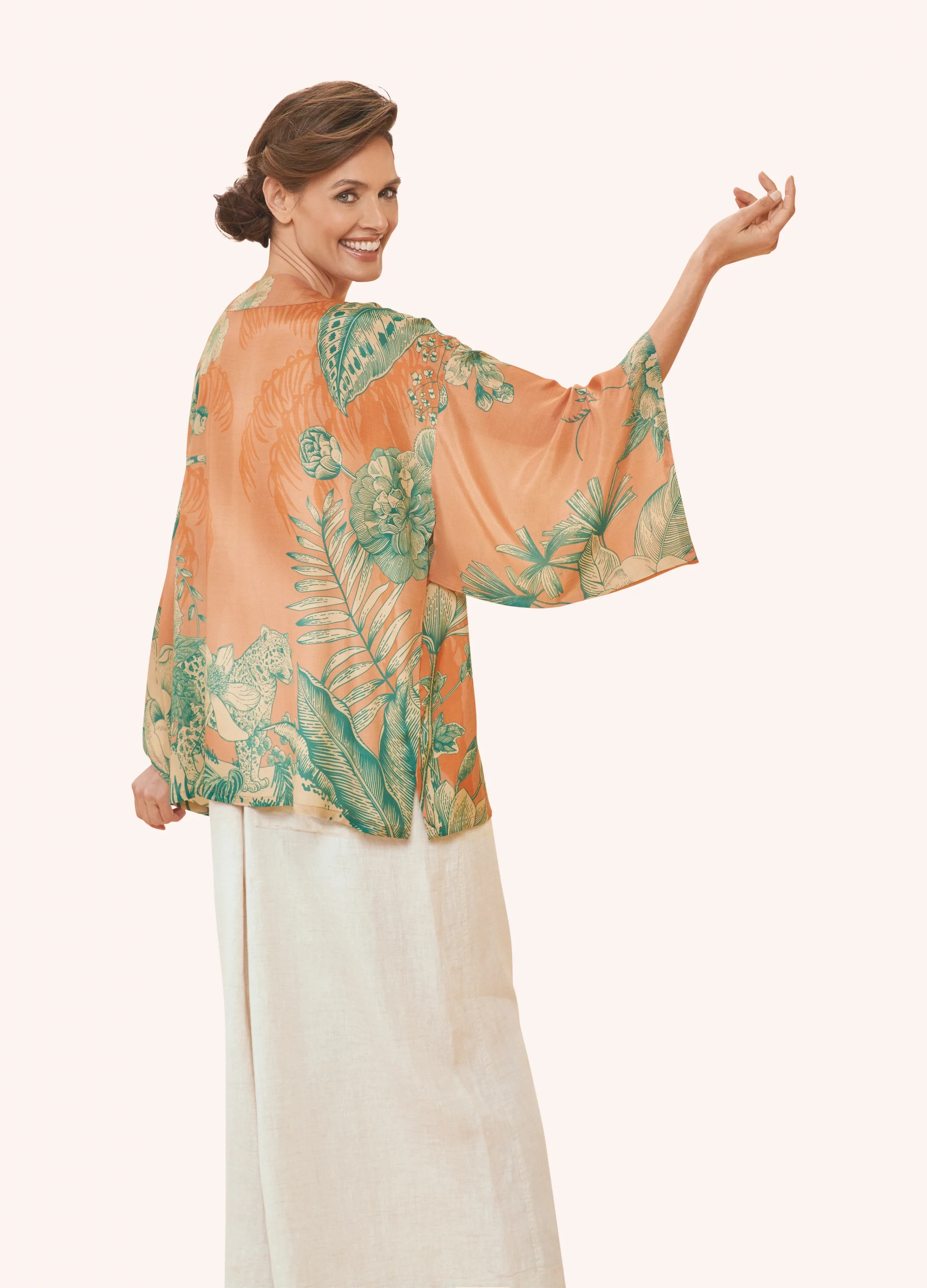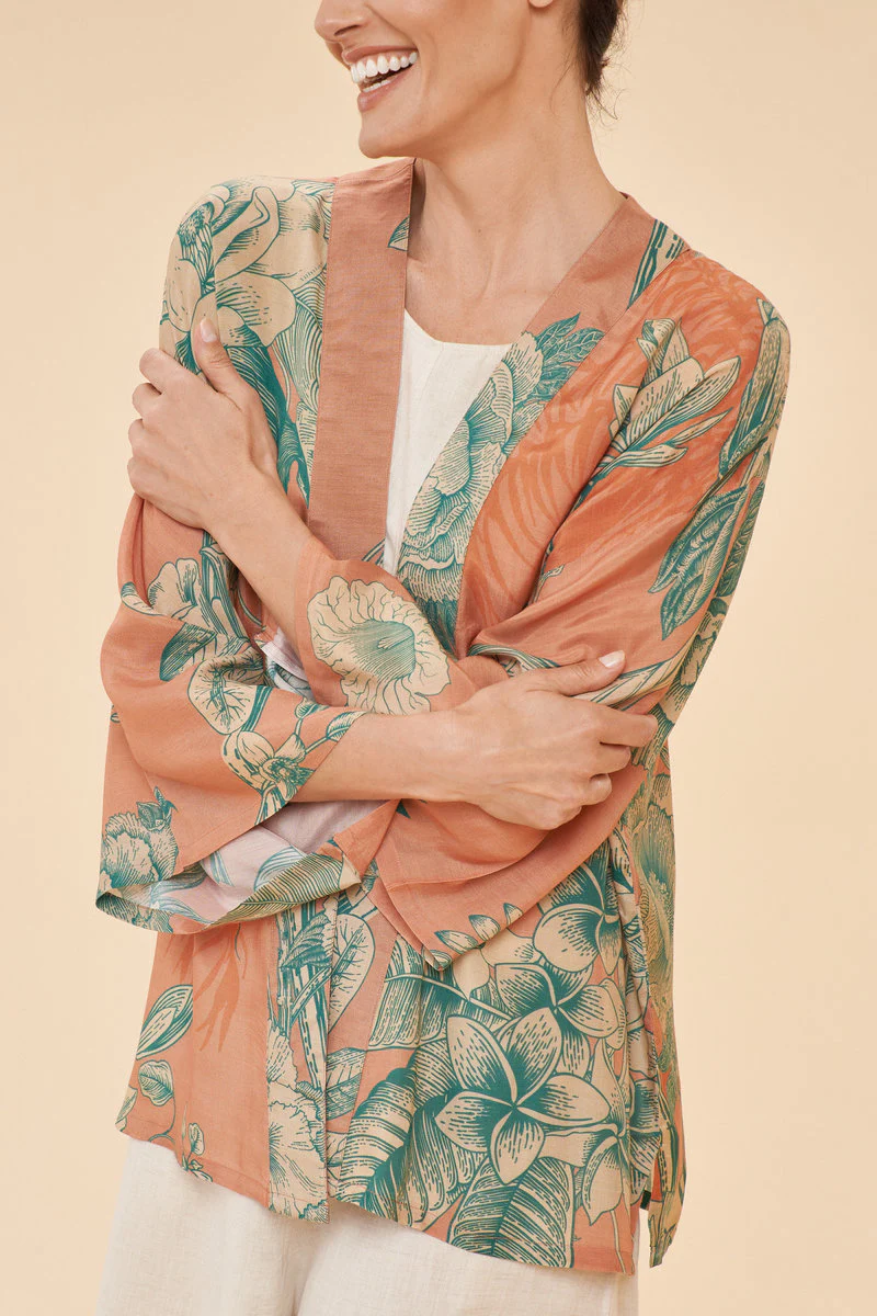 Dive into our Powderful world with this Floral Jungle Kimono Jacket in petal. From leopard friends to fabulous florals, this design is perfect for any capsule wardrobe. Sure to elevate your dinner party look, you will never want to take it off. Go on, treat yourself!
