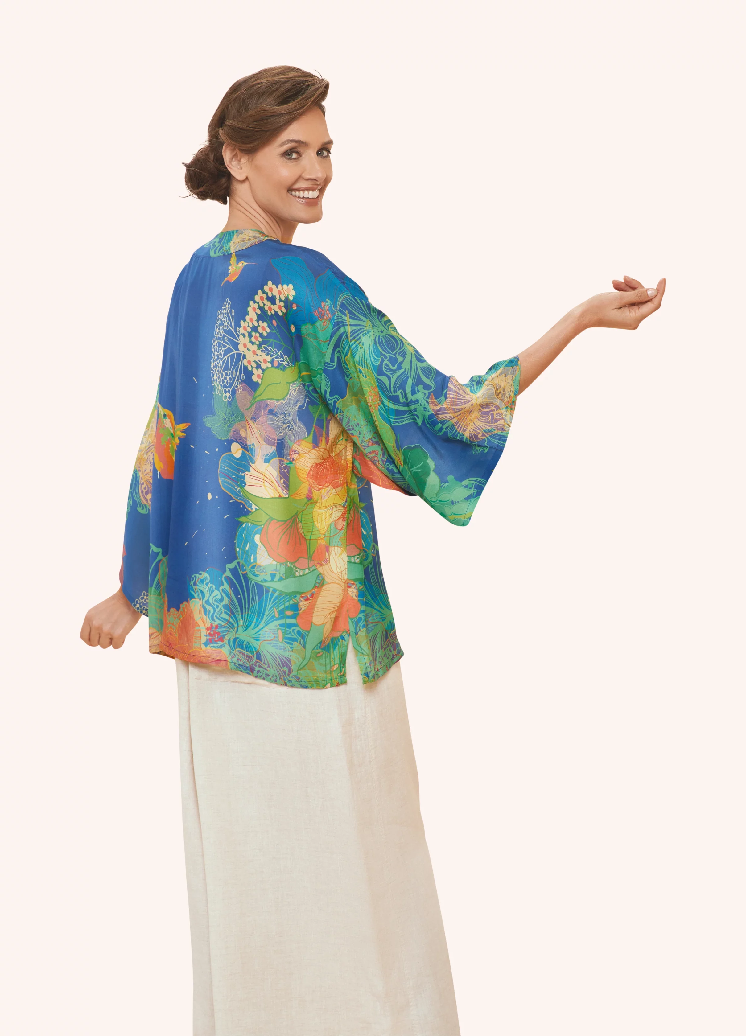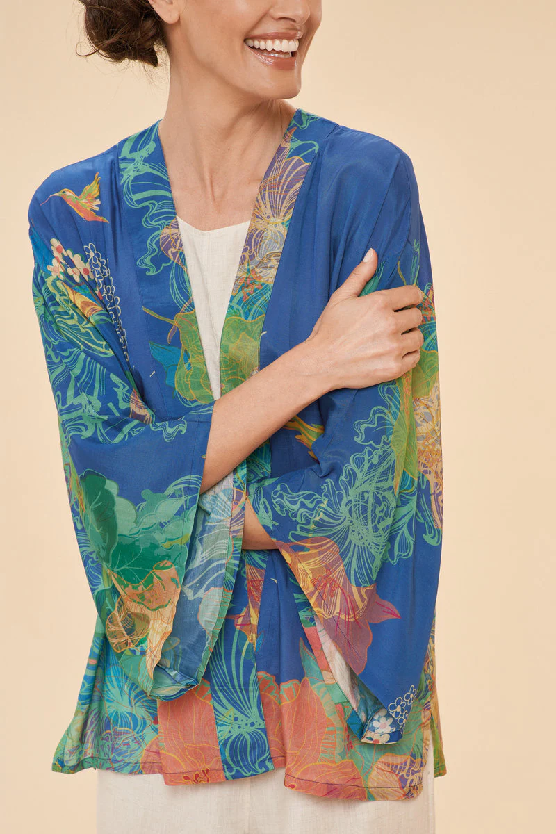 This Hummingbird Kimono Jacket in denim is feminine and bold in equal measure. Featuring fabulous florals, rich tones, and everyone’s favourite hummingbird character to create the most gorgeous coverup this season. Wear with jeans and a top for the ideal coverup. Go on, treat yourself!
