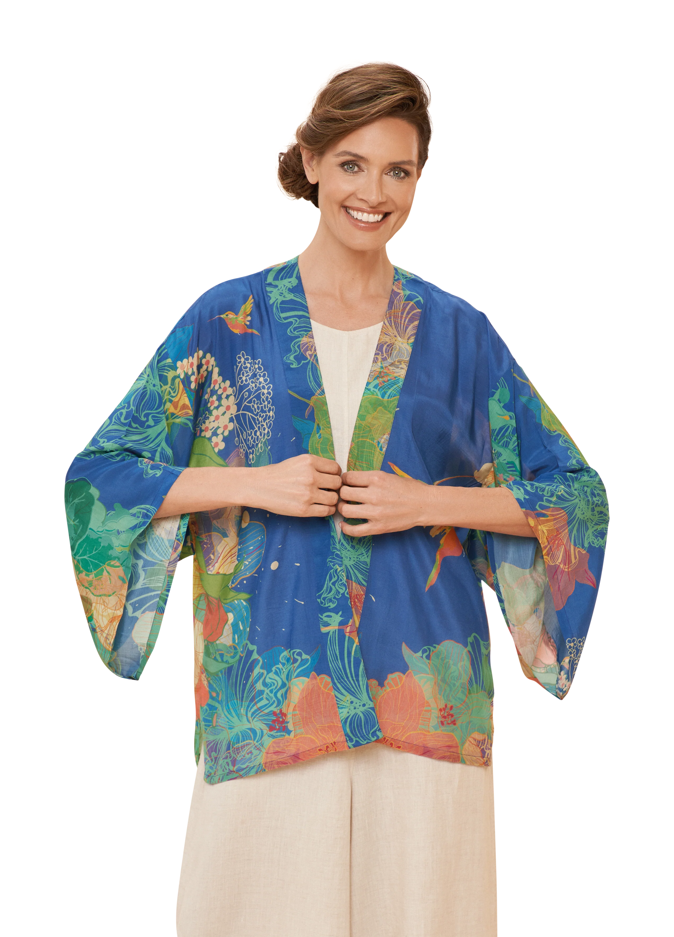 "The kimono jacket was even better than I expected from the photo. It was beautifully wrapped and the quality was amazing. I’ve have lots of positive comments when I wear it. Great service from order to delivery." - Ana M. verified buyer.