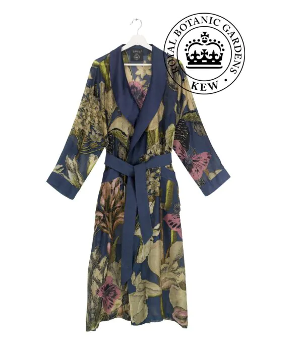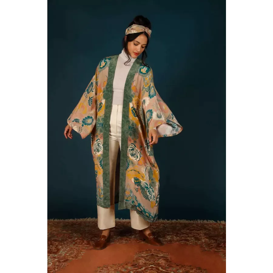 With a luxurious crepe de chine feel for Winter, this Folk Art Floral print is gloriously detailed and elegant – the perfect piece for dressing up a simple outfit. Equally suited to wrap around your sleepwear – or to elevate your dinner party look, you will never want to take it off! Notes on Kimono Sizing: Our Kimonos are unsized, and it really depends how you would wish to wear them how the fit will be! Some of us in the office wear layer them over jumpers or turtlenecks, where others refer them over a vest top or a dress. These will look great on anyone from around 5”2 in height to 5”10, they will just be a little longer on some than others!