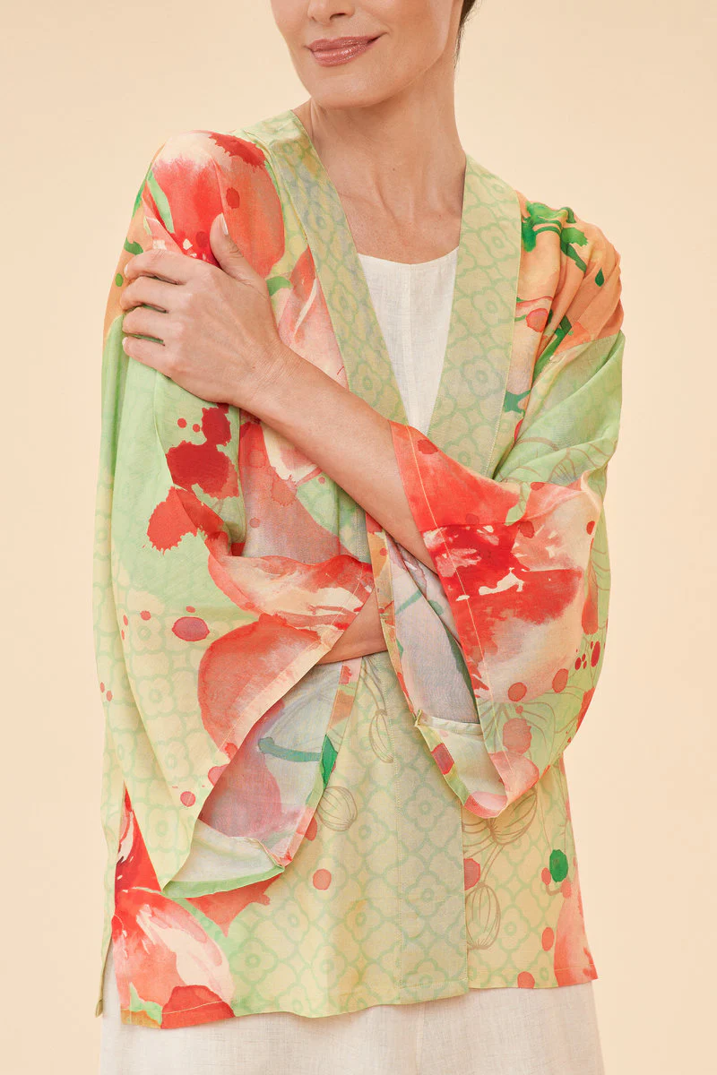 This kimono jacket is sure to be a Powderful favourite! With stunning details and gorgeous tones, our Watercolour Orchids design has so many details you won’t be able to resist showing it off! The watercolour elements blend with vibrant tones to evoke a look which is both an elegant and striking. Wear with jeans and a top for the ideal cover-up. Go on, treat yourself!