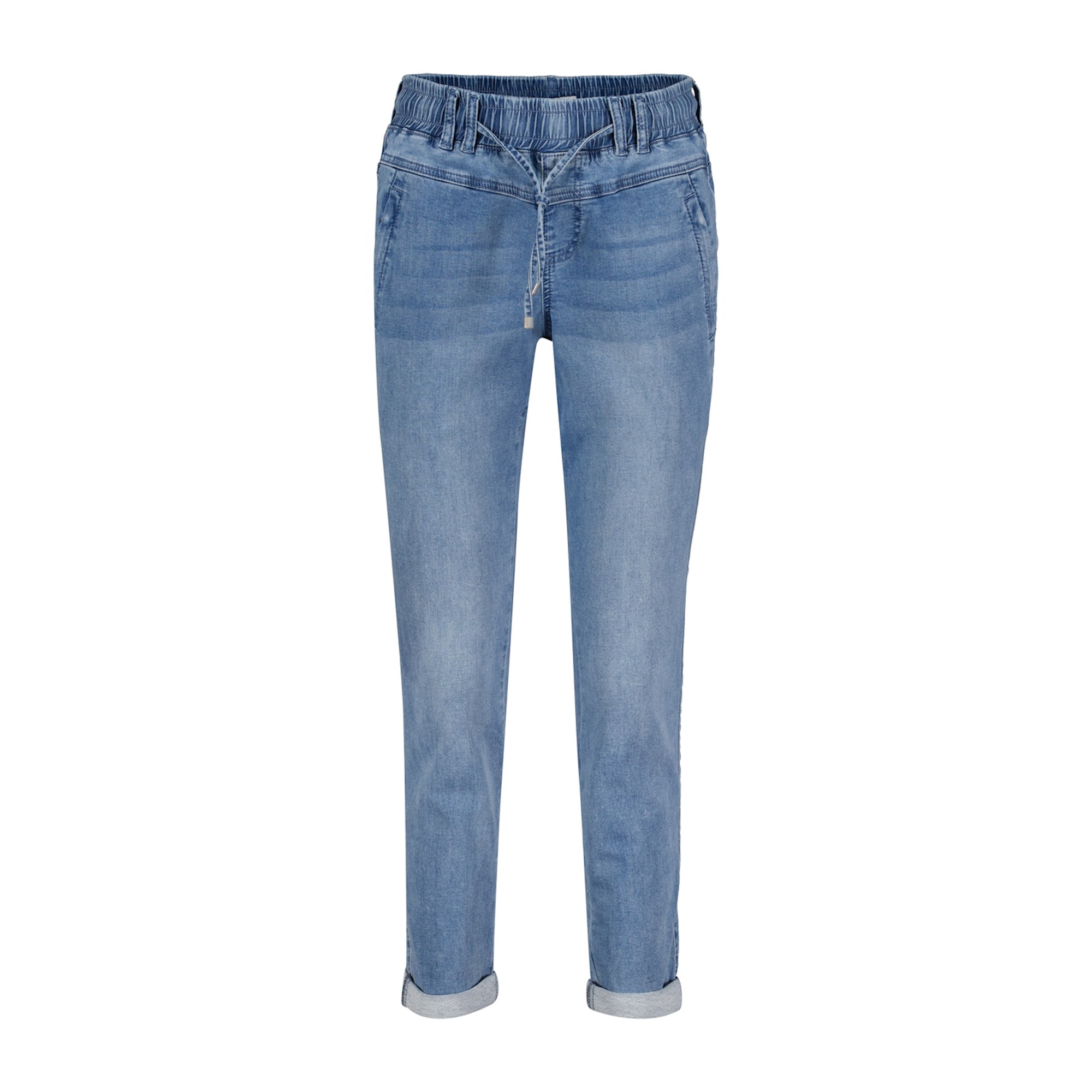 Length: Regular rise, Tapered legs