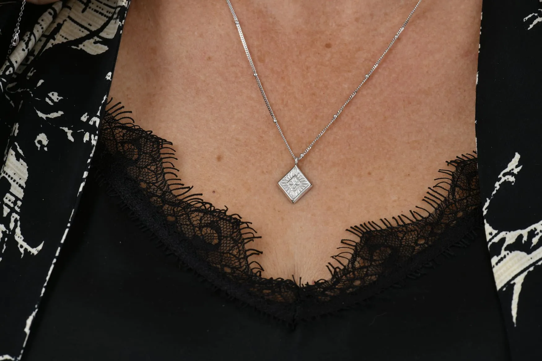 Dimensions: pendant 15mm x 10mm , necklace 16″ – 18″ (adjustable)