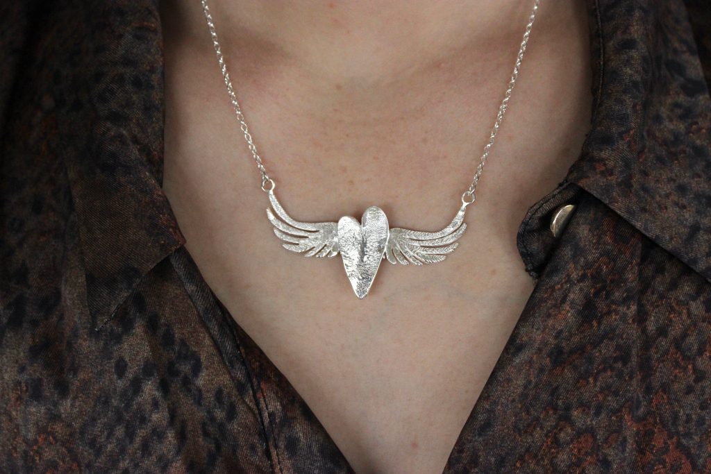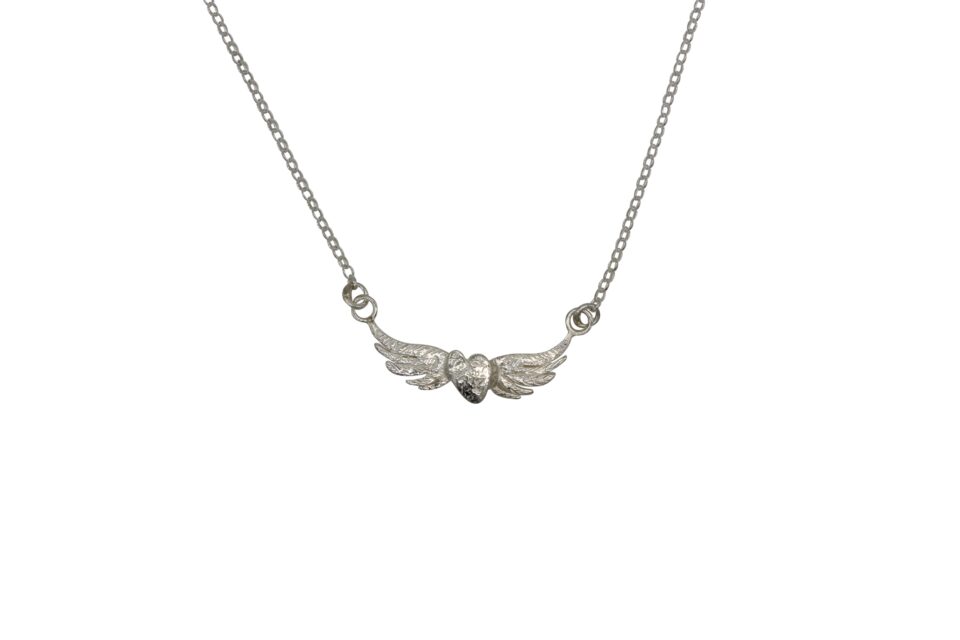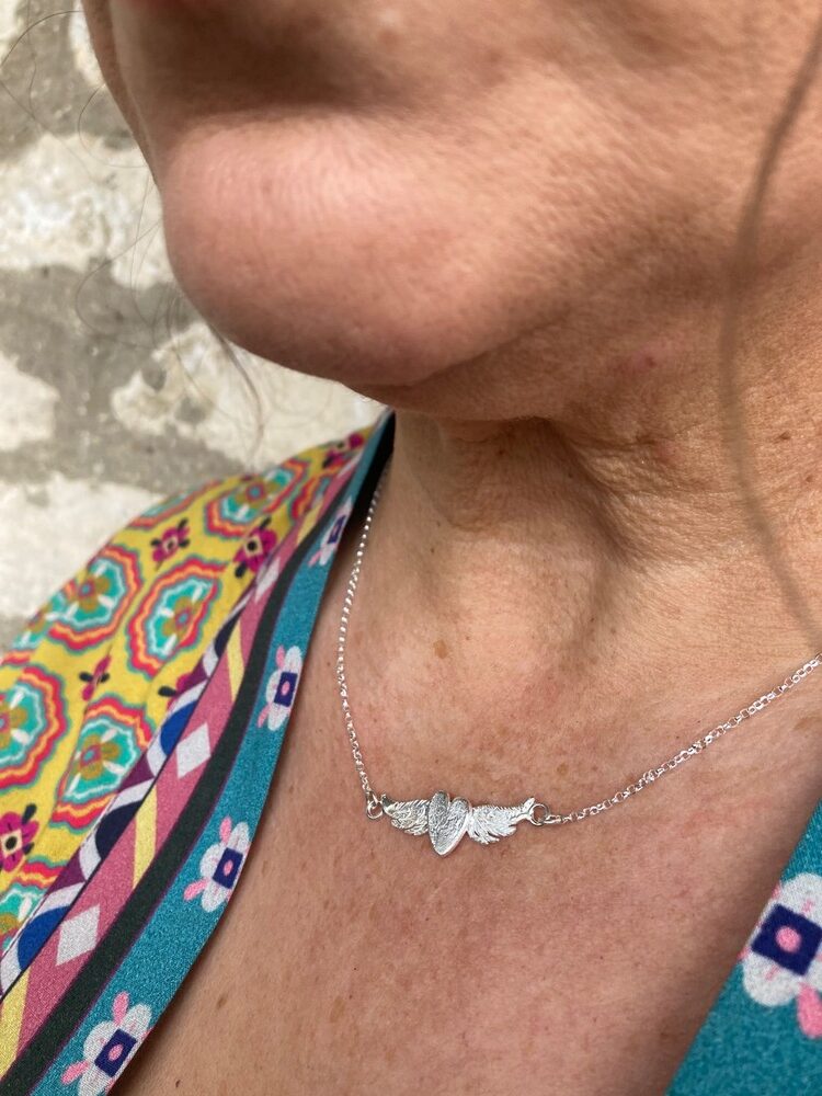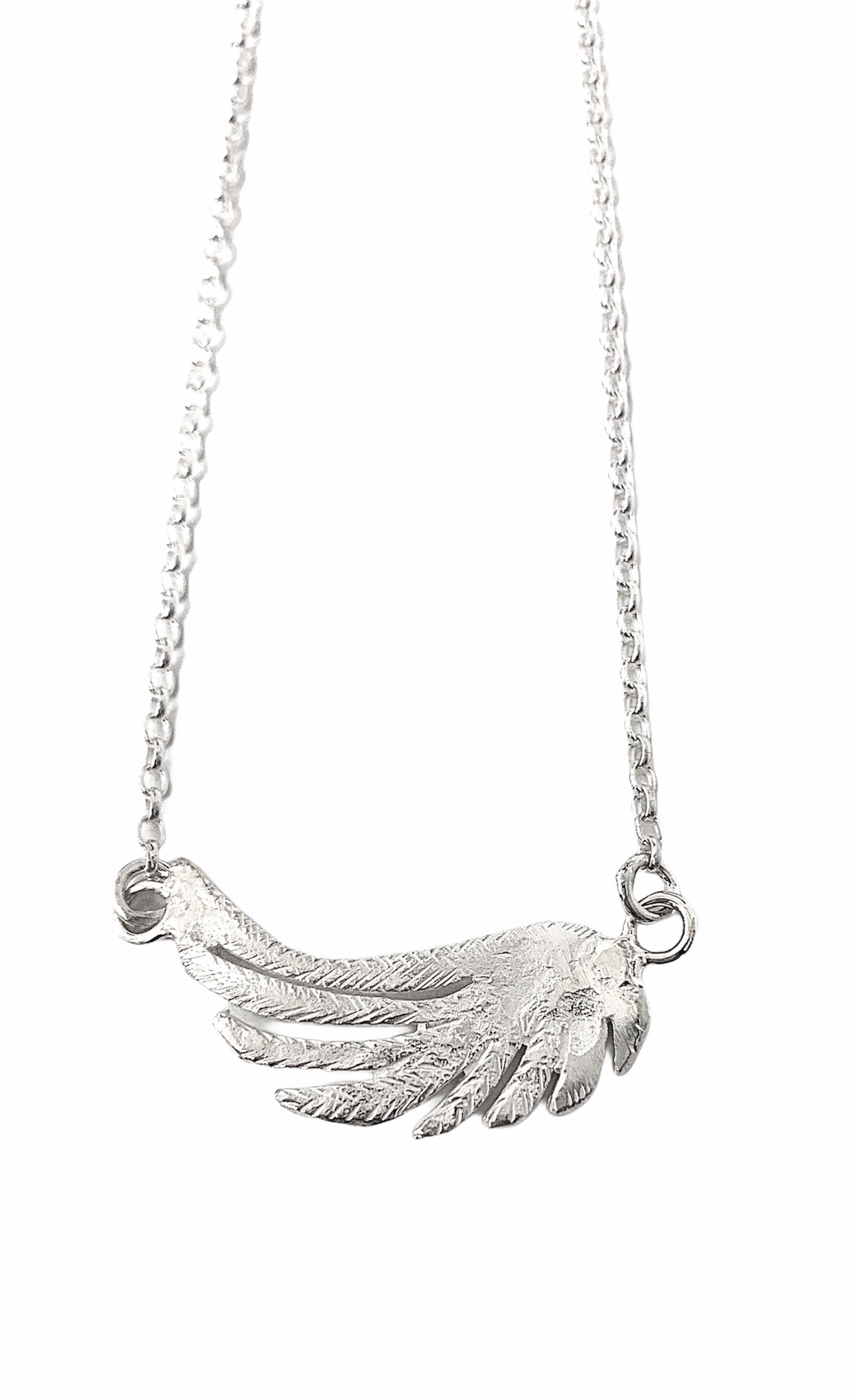 Silver Horizontal Angel Wing necklace, beautifully crafted by one of our British Designers, this necklace sits just at the nape of your neck. Wear on its own, or for a different look add a layer, mixing gold and silver is a great idea too.