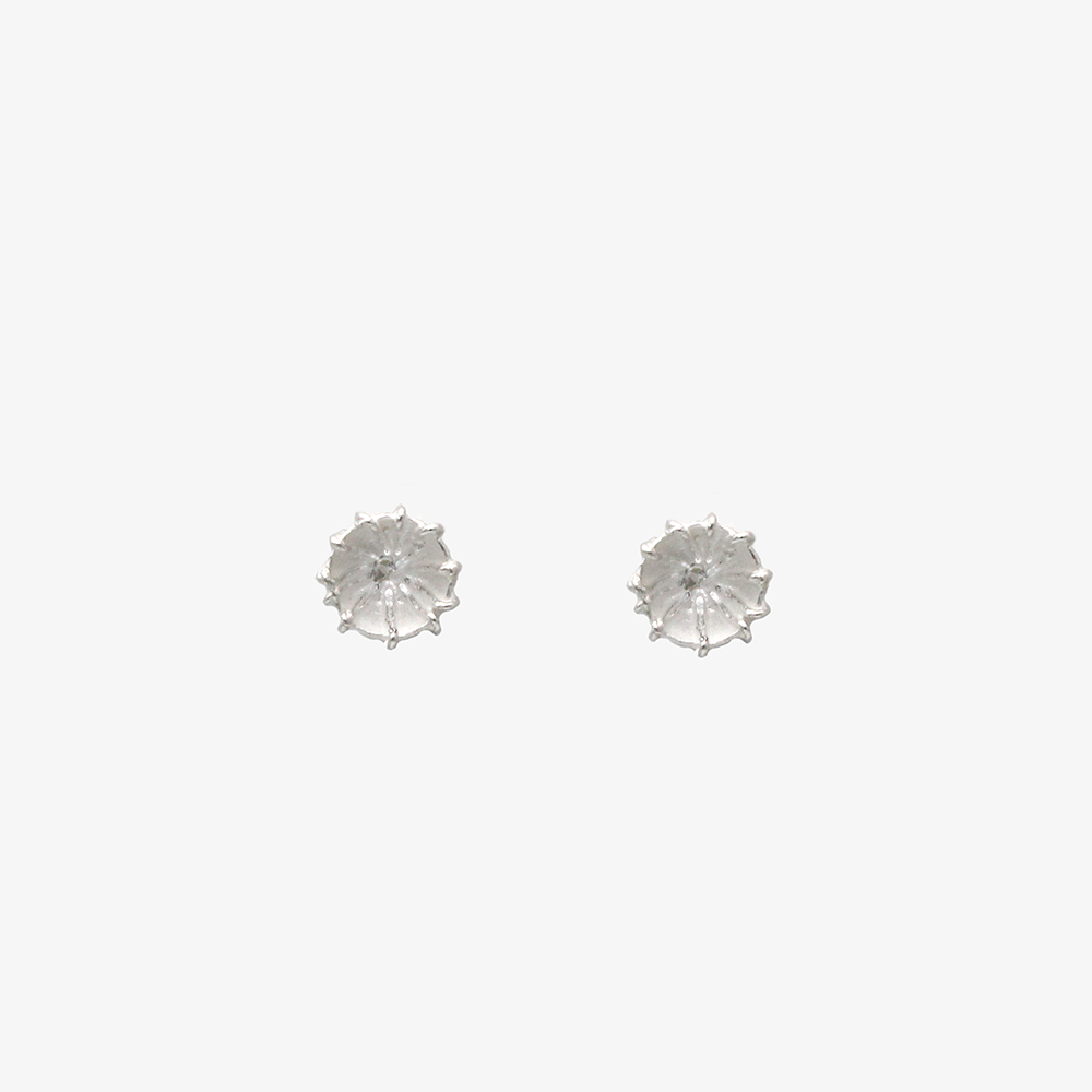 A sweet pair of sterling silver domed poppy seed head stud earrings with a highly textured and tactile finish.