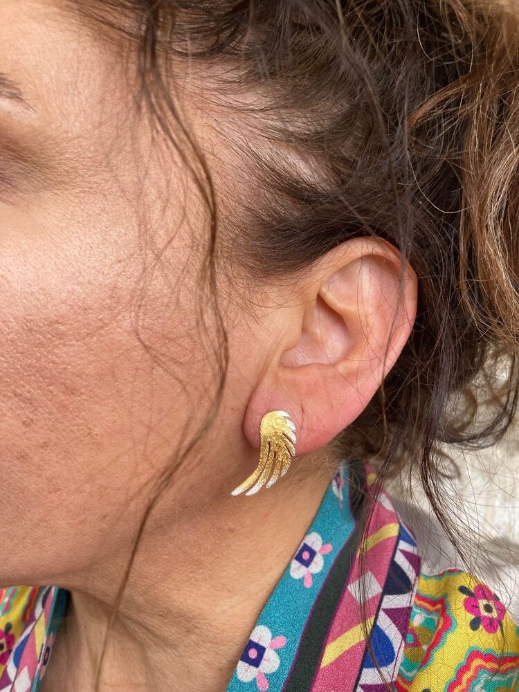 Fi Mehra Jewellery | Silver Wing Stud Earrings with Gold Plating