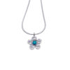 Sterling silver flower pendant with a round opalite centrepiece on a smooth snake chain.