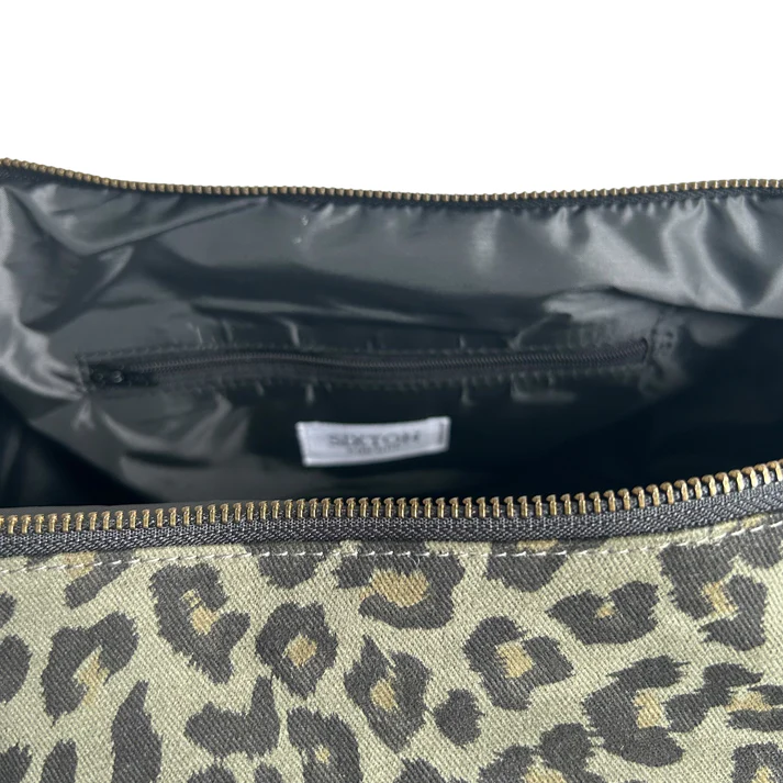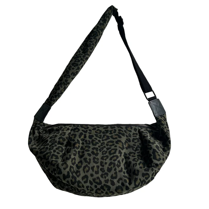 The Brixton bag. A stylish sling bag / cross body style bag in a striking leopard print, made from recycled cotton. This bag is like a tardis! It fits SO much in. The interior features a zipped pocket. Choose from a fabulous stylish Brown go a bit more urban with the Green.