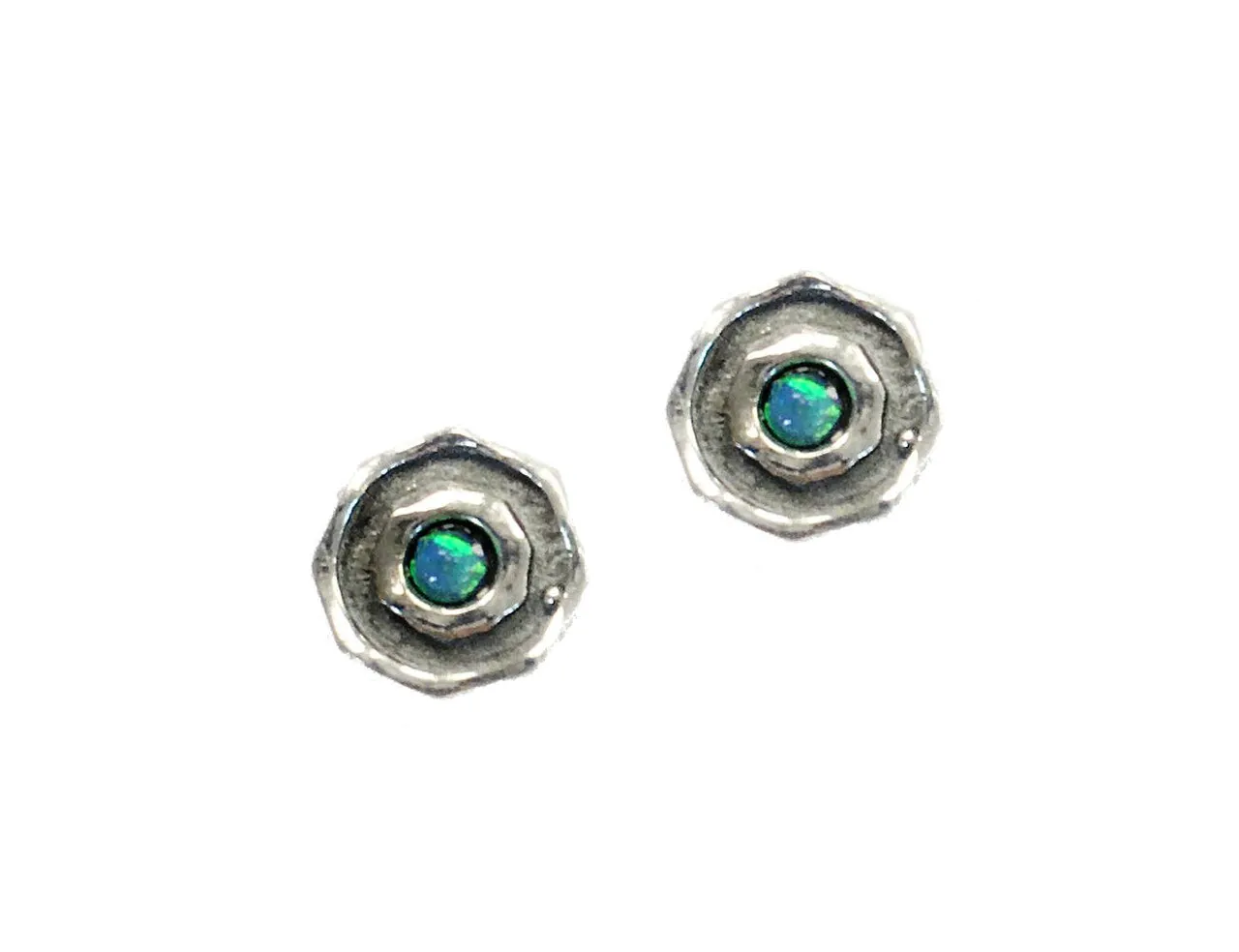 Lovely small handmade 925 Sterling Silver irregular shaped studs with tiny, glistening opalite stones.