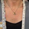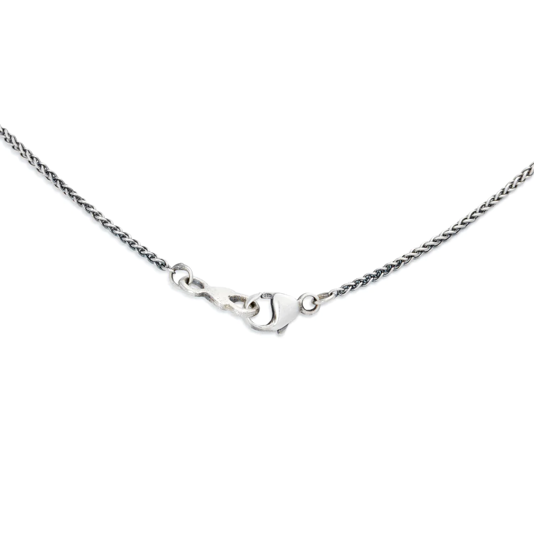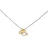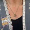 This lovely and very easy to wear necklace is made from 16″ fine woven 1.2mm “spiga” chain with a carabiner clasp and heart catch. It has three sweet little charms hanging loose on the chain: a set gem stone, a mini moon and a north star. The stone shown in this image is an aquamarine. The necklace is made in silver with gold plated detail.