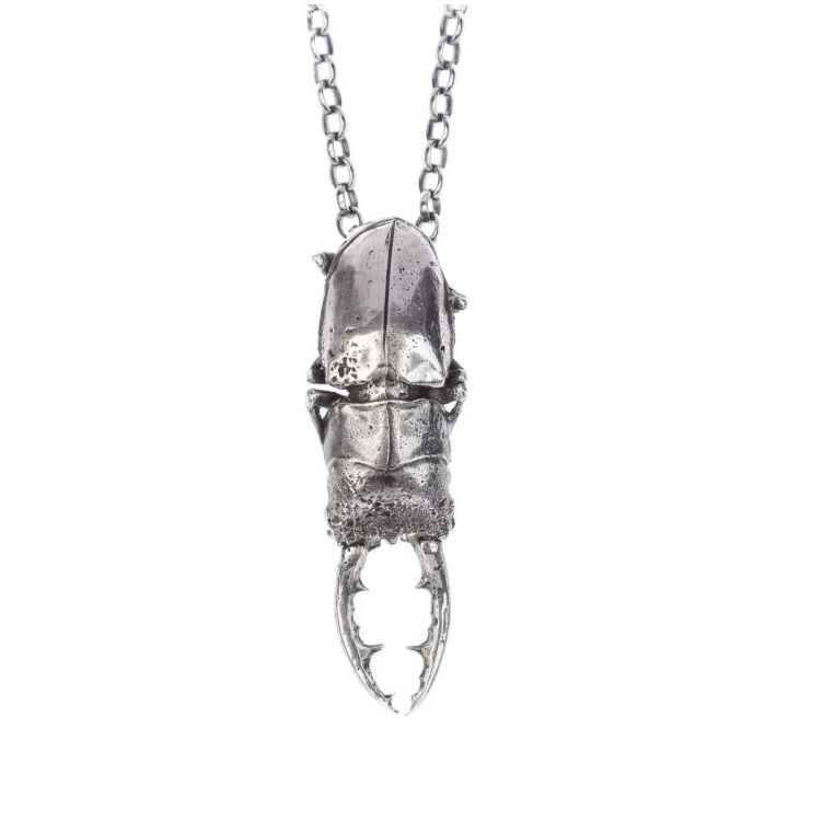 The king of our woods and gardens, the stag is the largest beetle in the UK countryside and is rarely seen nowadays. This naturally deceased king has been given a new lease of life in solid silver and has been lightly oxidised to darken and accentuate the fine details of his natural form, including all of his legs on the underside.