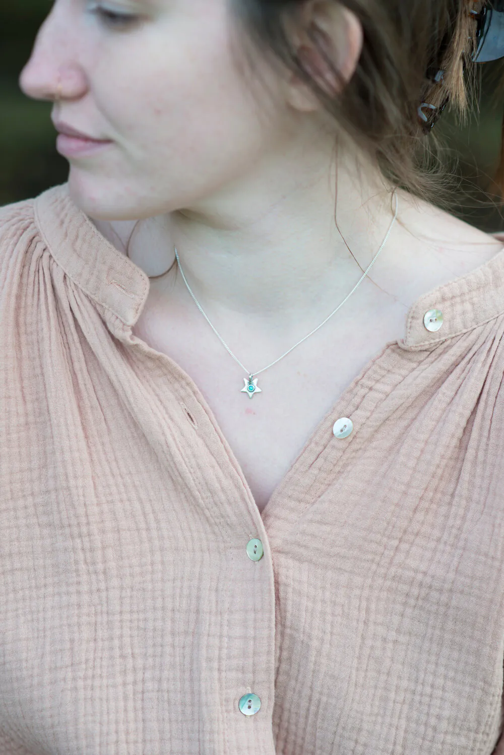 Stunning pendant with a sterling silver star centrepiece on a smooth snake chain.