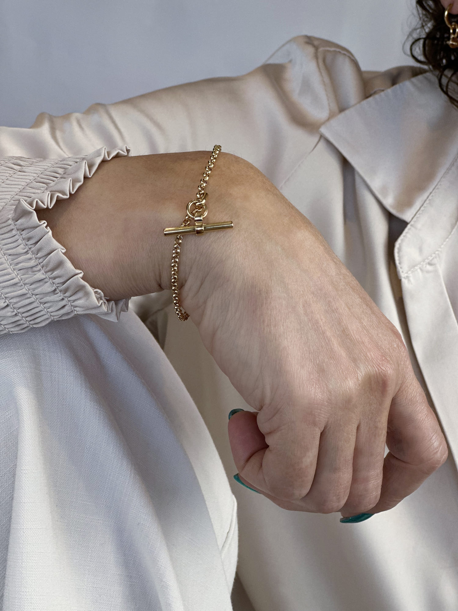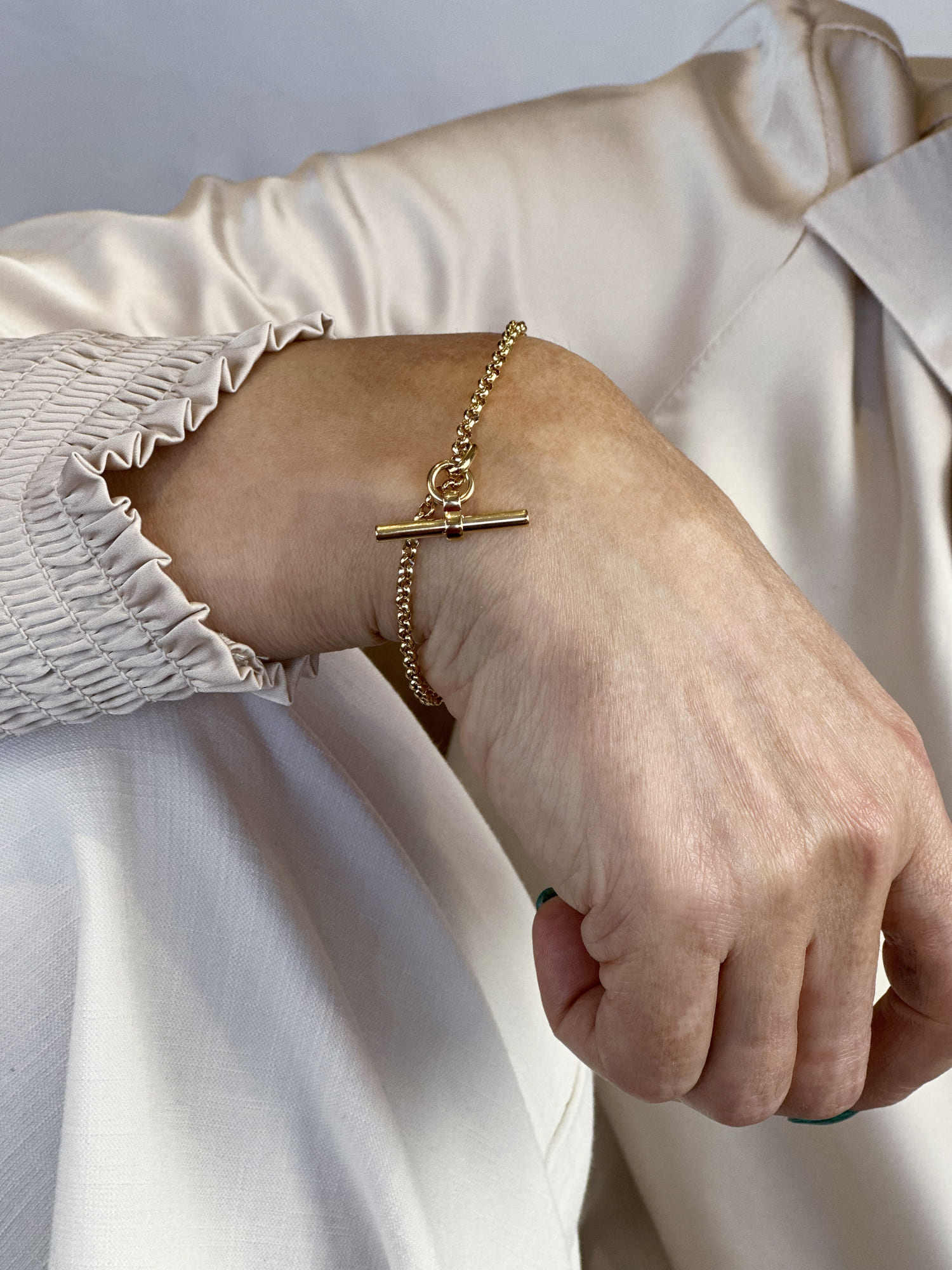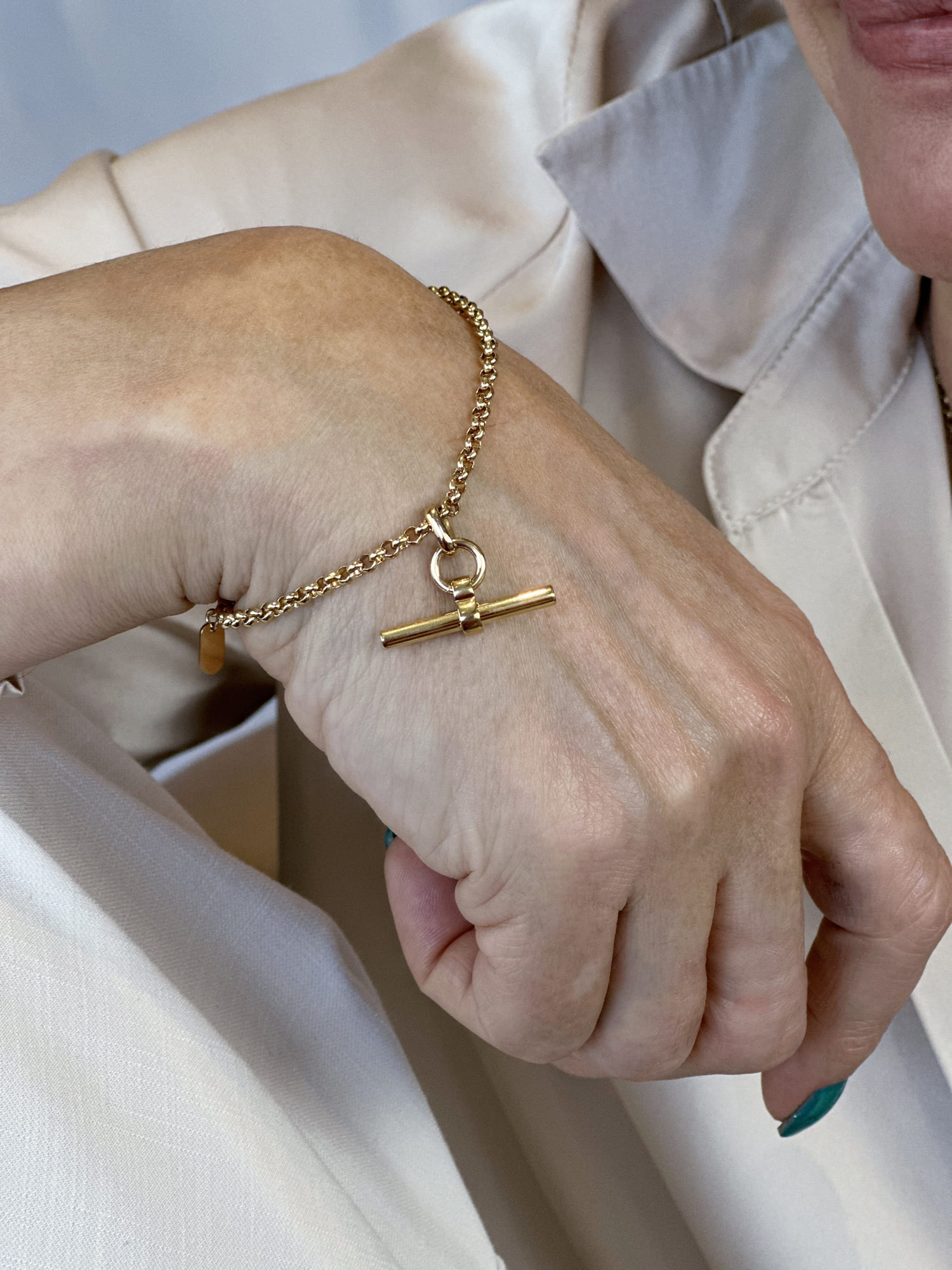 A timeless classic with a modern edge. The T-Bar Drop Bracelet features a sleek T-Bar pendant paired with polished gold links for an effortlessly elevated finish. Bold yet refined, it’s the perfect everyday statement — designed to wear solo or stacked, with a waterproof, tarnish-free coating and lifetime colour guarantee.