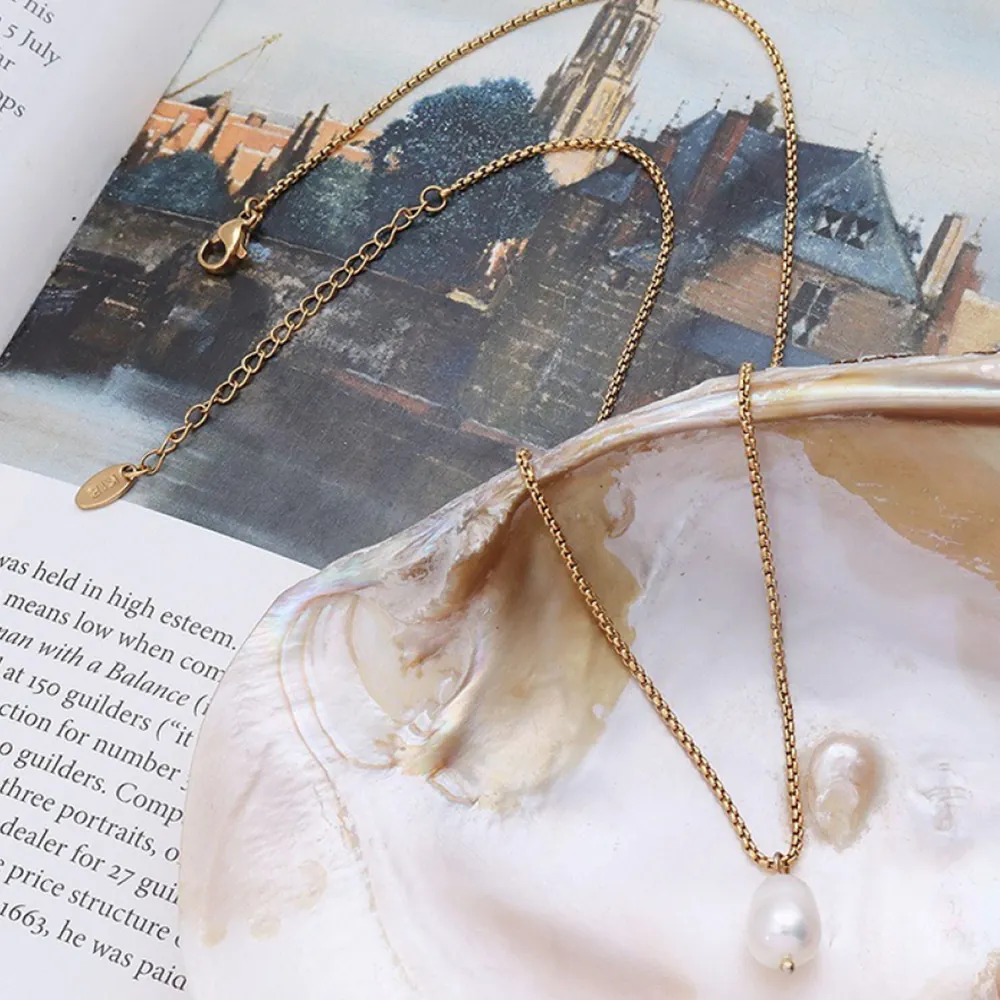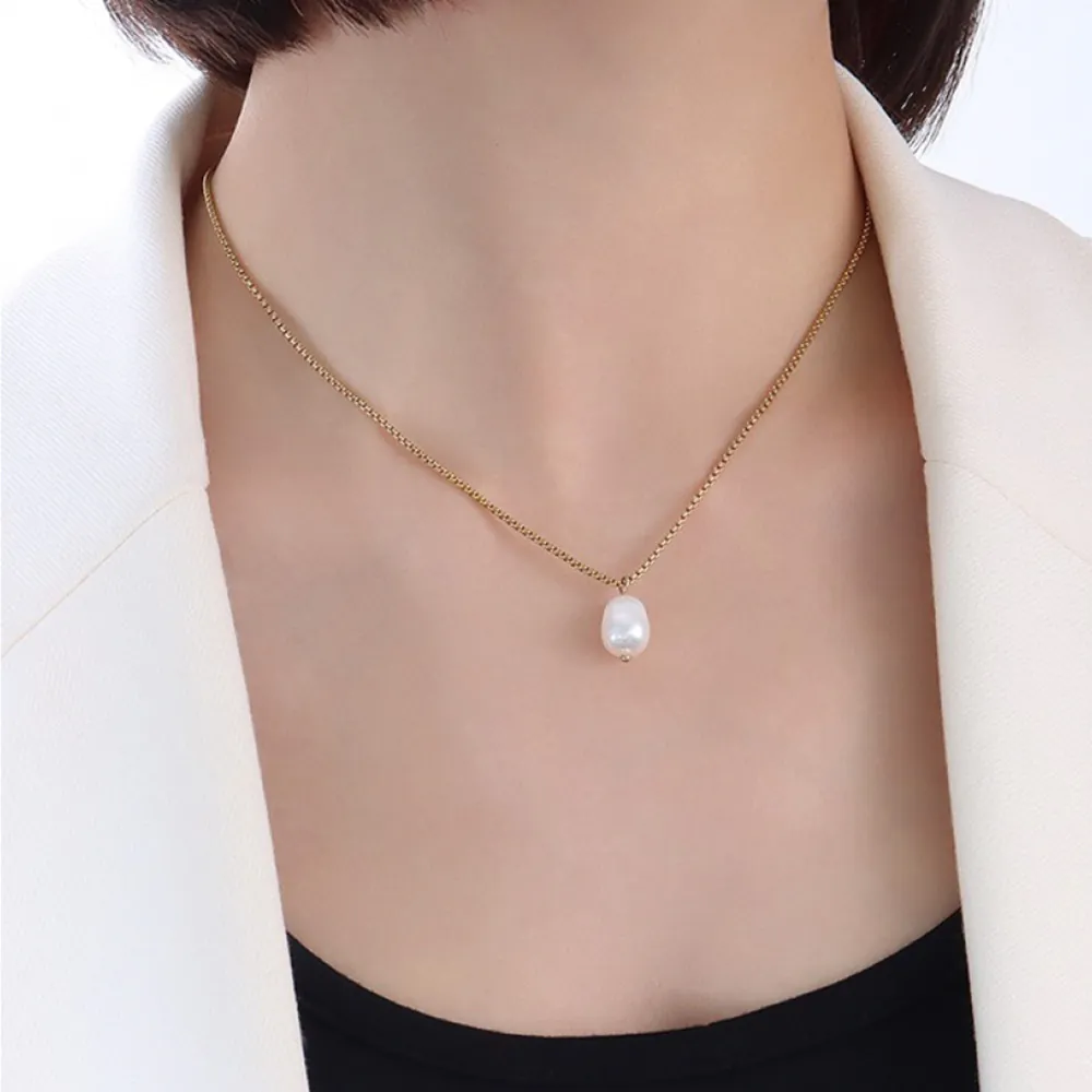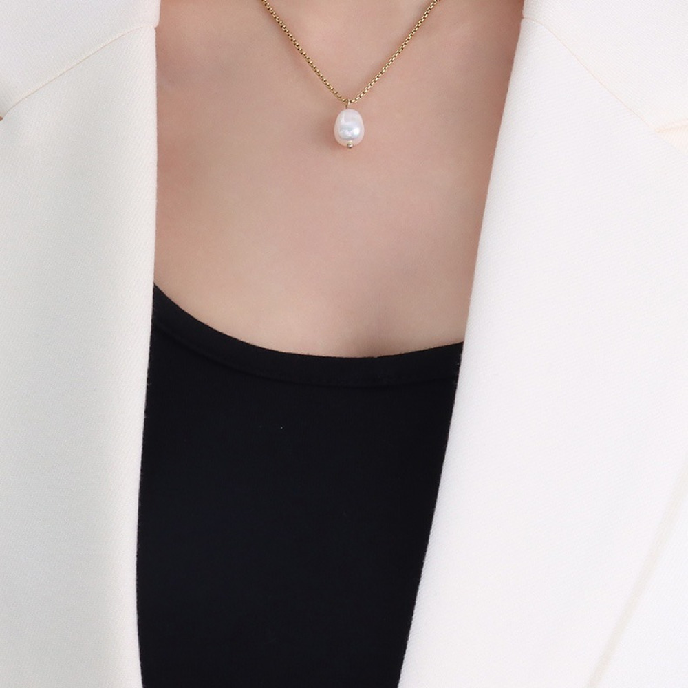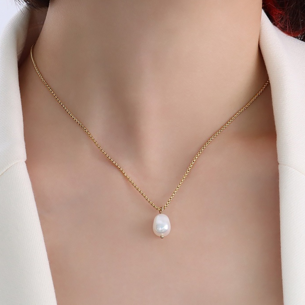 Materials: 18k gold plate, SGS-certified surgical steel, fresh water pearl.