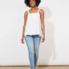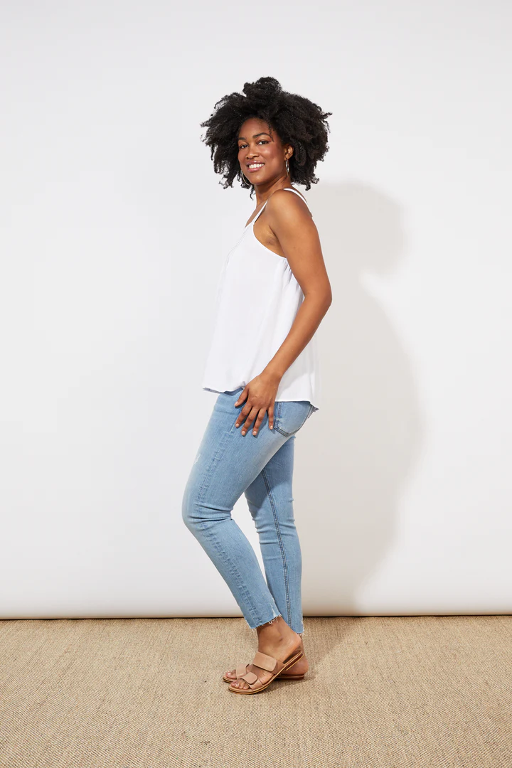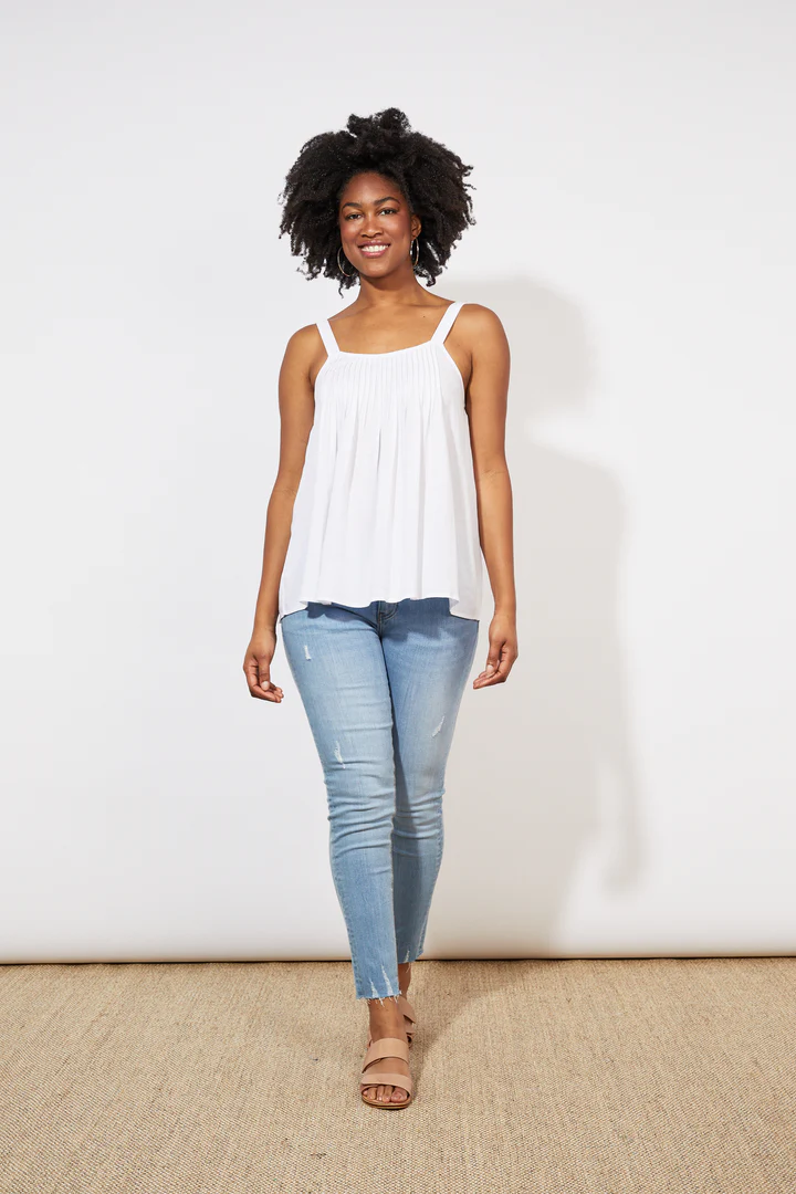 The Tropicana Tank will be your new daily go-to. A step above your basics, this tank offers a versatile and airy fit that will keep you cool all summer long. The scoop neck, pintuck detailing, and adjustable shoulder straps add charm, while the relaxed high-low hem creates an effortless, laid-back feel. Pair it with loose linen pants and sandals for a casual summer vibe.