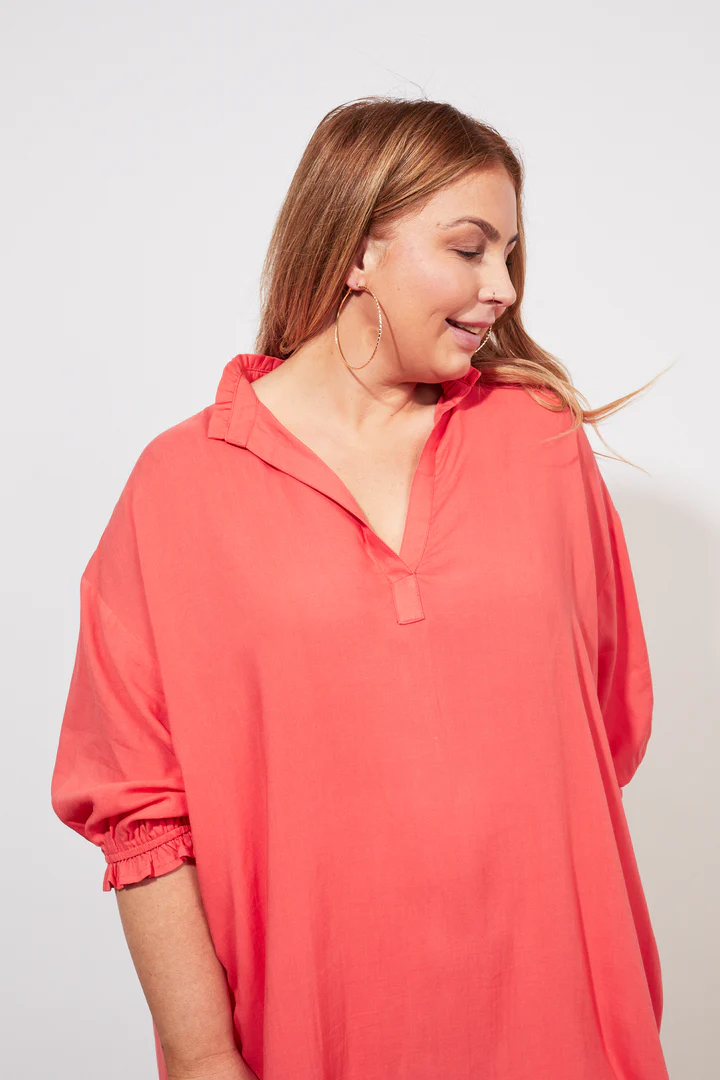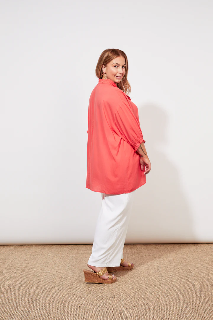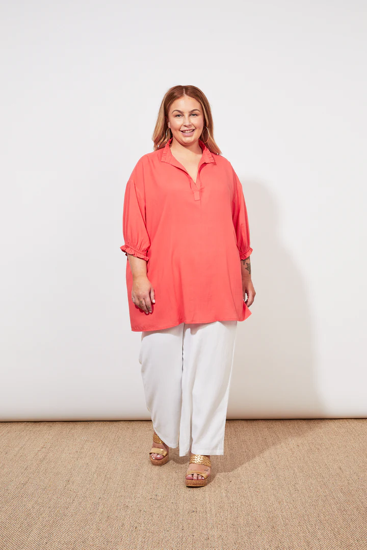 The Tropicana Top is the perfect fusion of simplicity and sophistication! Its delicate details shine through the relaxed, oversized fit. Crafted from a breezy linen blend, you’ll stay fresh through the warmer season. Whether it’s a chic office look or a casual dinner, pair it with a maxi skirt and sandals.