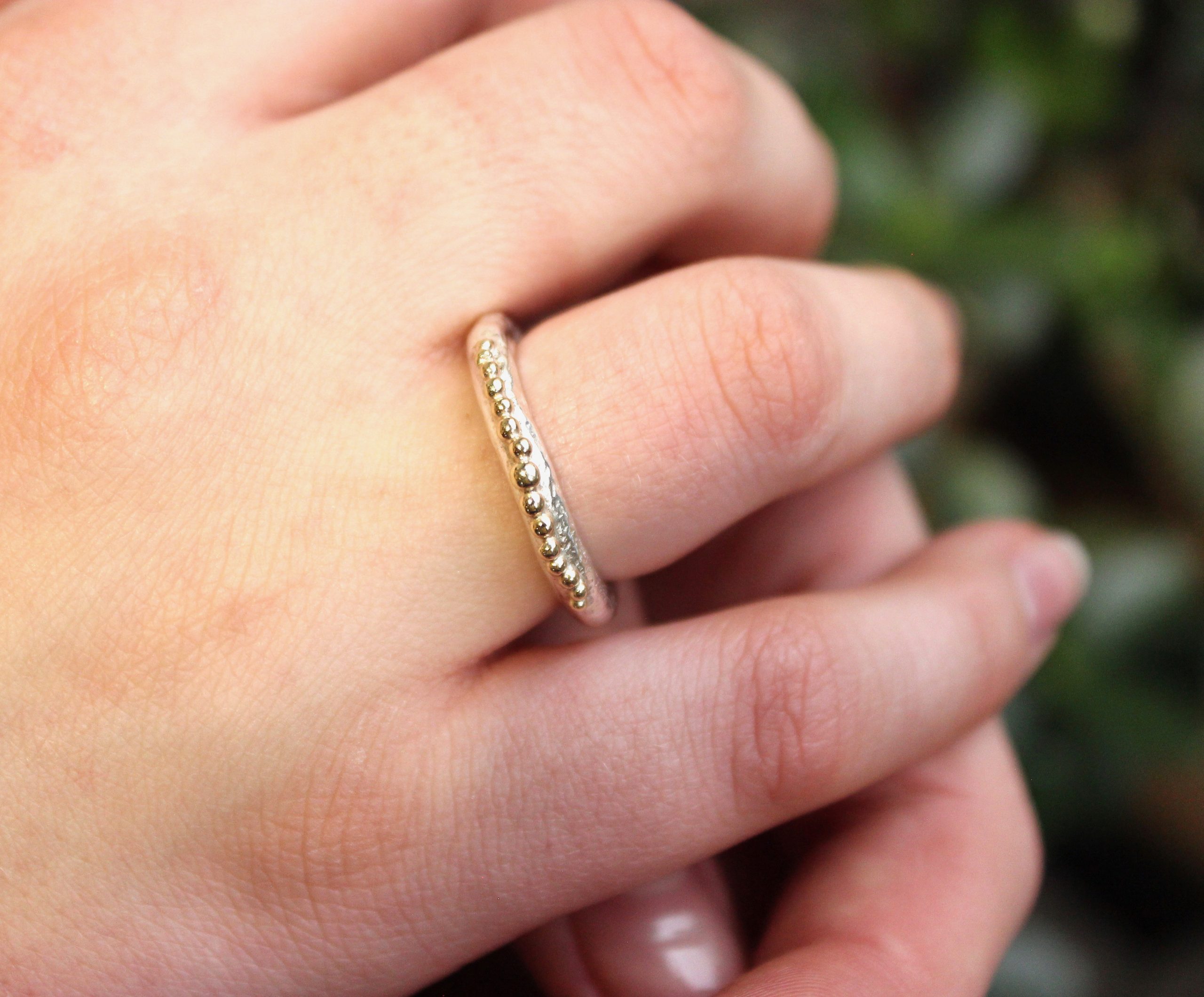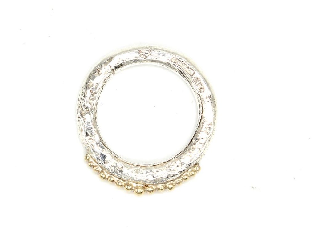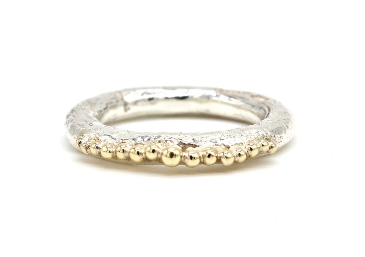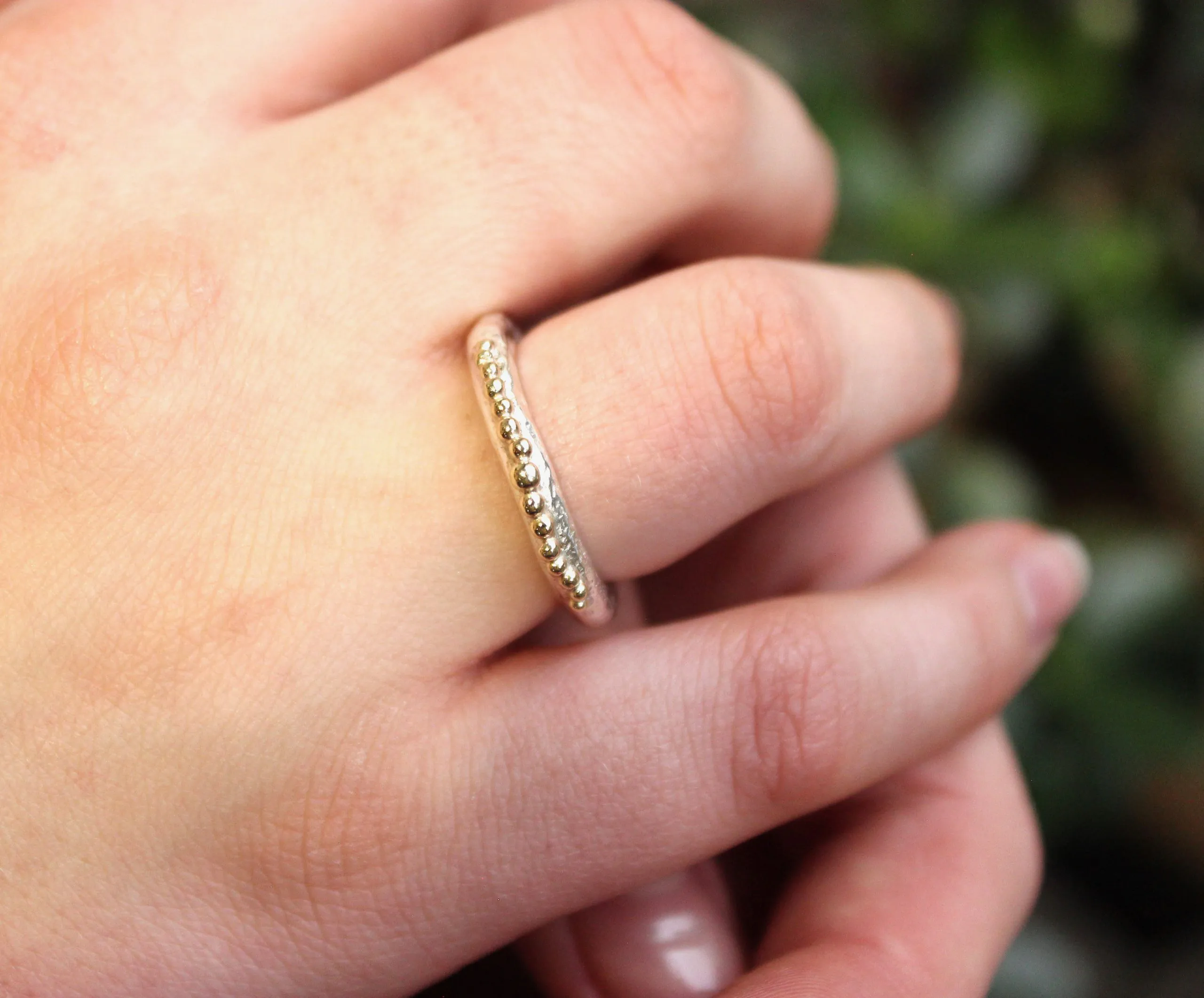 Fi Mehra Thick Hammered Silver Ring with 9ct Gold Dotwork Detail