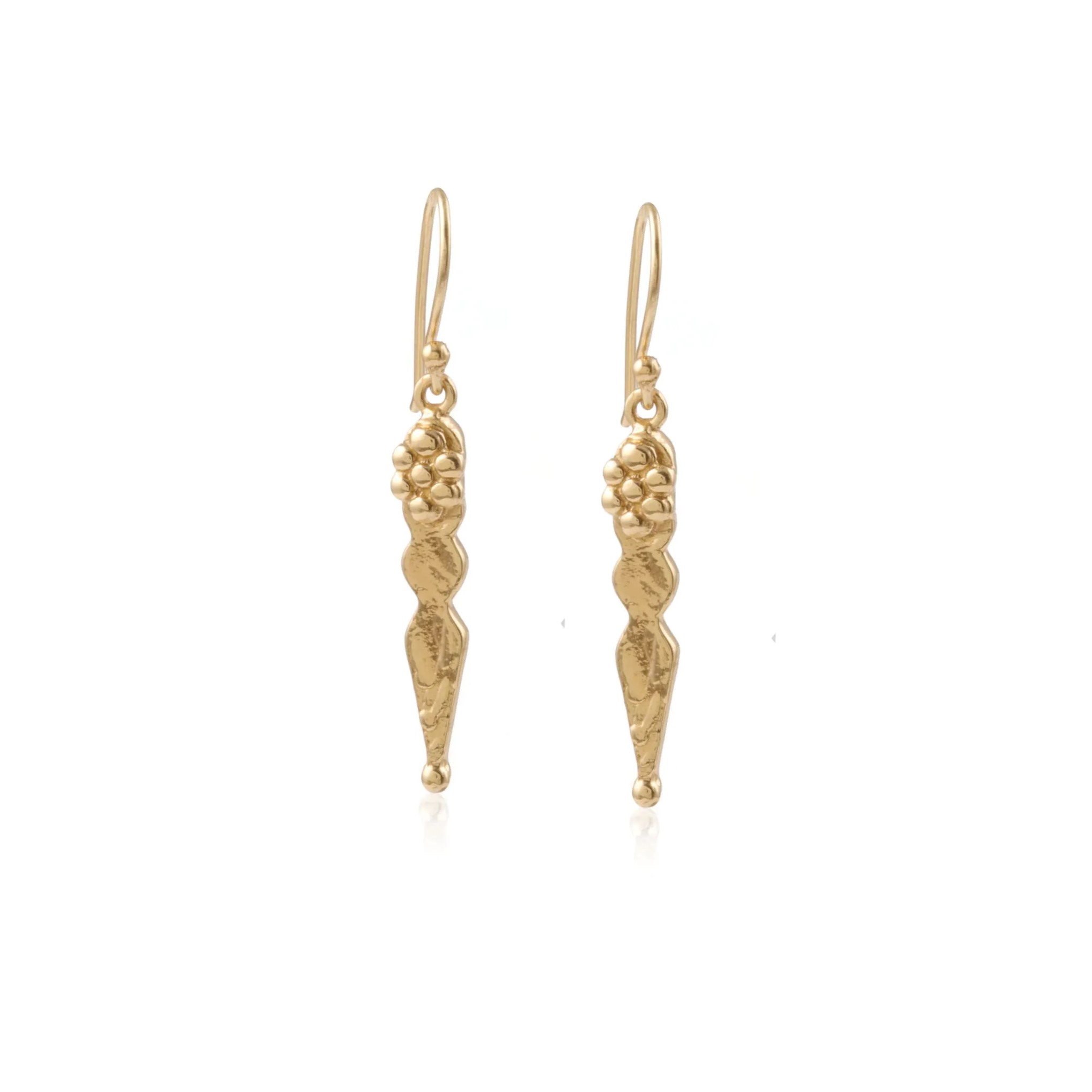This exquisite piece is a revival of a handmade pendant from India, cast over 30 years ago. Discovered by Liz amidst a pile of scrap in an Indian bazaar, these treasures were once deemed waste, remnants of broken necklaces and aged jewellery destined for melting, erasing their heritage. However, captivated by the unique charm of this particular piece, Liz rescued it from obscurity, safeguarding it for over three decades. Now, transformed into earrings, this once-overlooked gem emerges as a testament to preservation, breathing new life into its rich history.