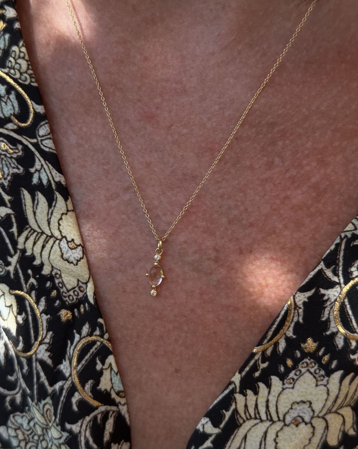 Embracing sustainability, every pendant in the Lotus and Bear Collection is crafted from solid recycled sterling silver and authentic hand-cut gemstones, plated in 18k gold and enhanced with an e-coating for added durability and longevity. This commitment to responsible practices ensures that each piece is not only a beautiful accessory but also a thoughtful contribution to the environment.