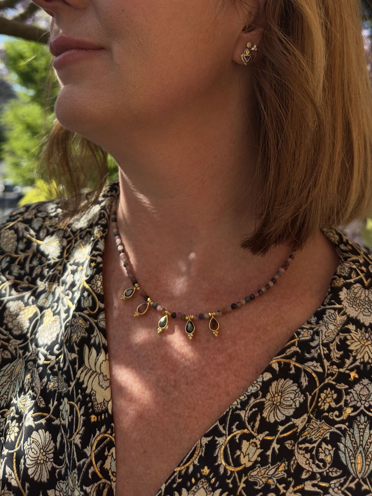 Our collection has its roots in the heart of India, where skilled local artisans meticulously handcraft each pendant. We are deeply committed to ensuring fair pay for their exceptional work, helping them support their families and uplift their communities. By partnering directly with these artisans, we not only celebrate their craft but also give back to India, fostering sustainable livelihoods and making a positive impact on the lives of those who create these beautiful pieces.