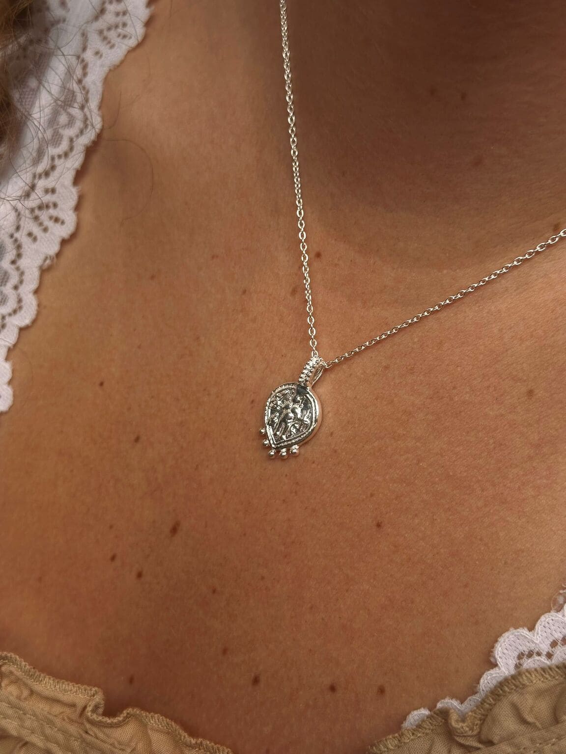 These captivating pendants draw inspiration from authentic medallions, trinkets, and keepsakes that were discovered or gifted to our founder, Liz, during her extended time in India over 30 years ago. Cherished and preserved for decades, these treasured items have been transformed into a collection that resonates with the mystique and charm of the diverse cultures that have shaped its creation.