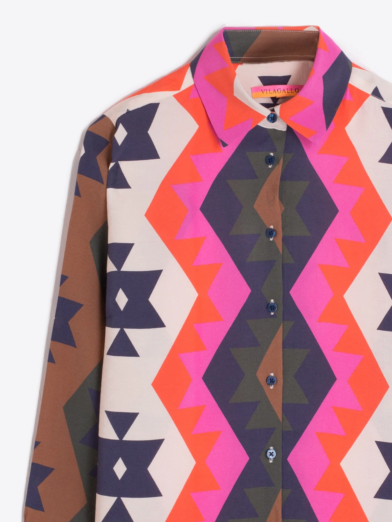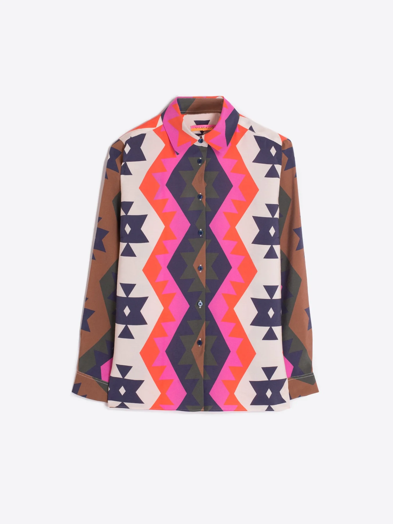 Print shirt with geometric design. Breathable modal fluid fabric. Buttoned cuffs and smart classic collar. Relaxed fit.